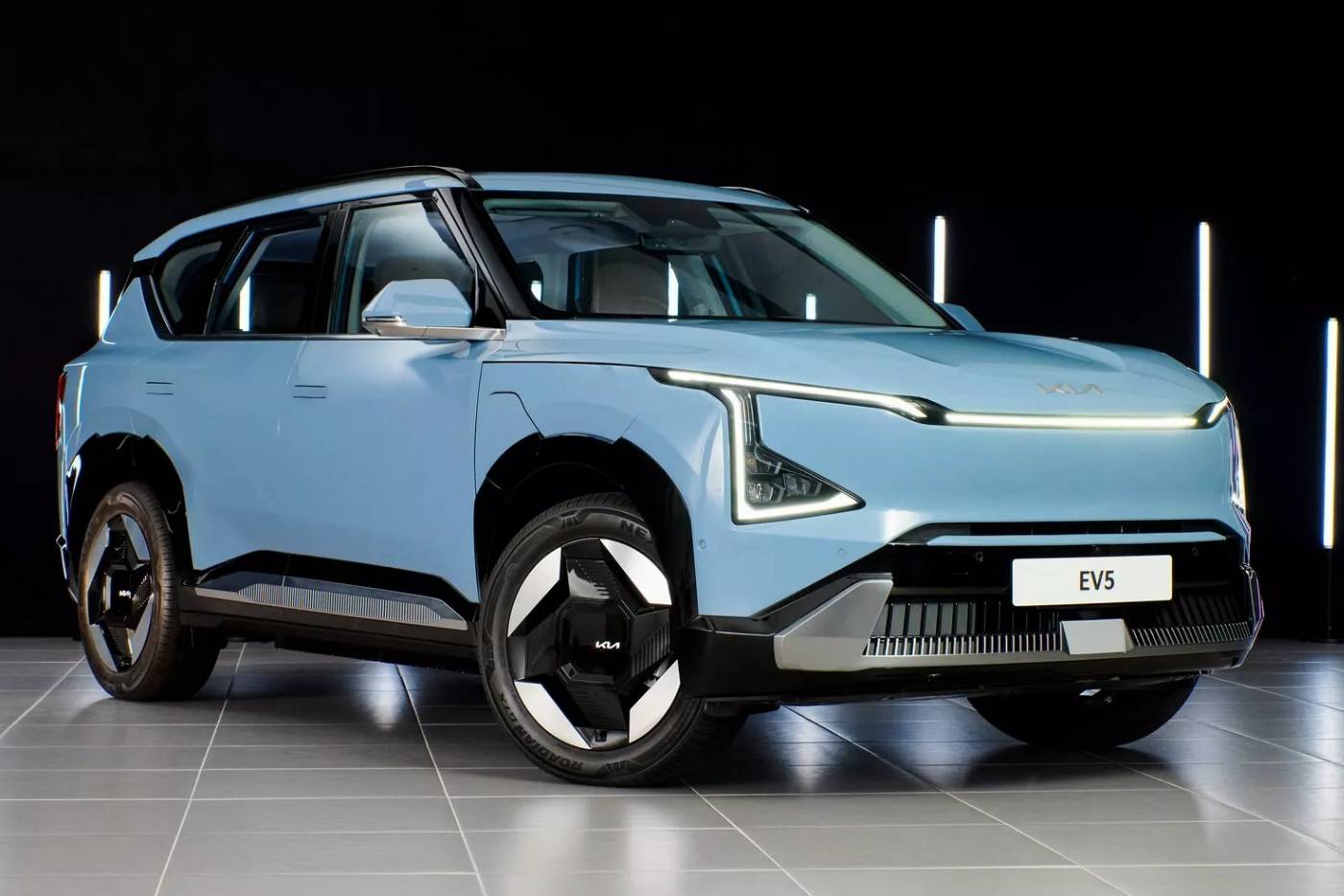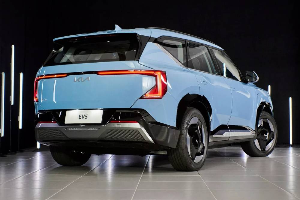 Εμπνευσμένο από τη σχεδιαστική φιλοσοφία «Opposites United» της Kia, το πρωτότυπο EV5 αποπνέει ξεκάθαρα μια προοδευτική εμφάνιση από όλες τις γωνίες. Ωστόσο, δεν υπάρχει αμφιβολία για την αυθεντικότητα και την ταυτότητα του οχήματος ως μέλος της οικογένειας Kia. Στο μπροστινό μέρος, μια νέα μορφή Digital Tiger Face προβάλλει, μαζί με πολλές έντονες ακμές σε ολόκληρο το αμάξωμα. Τα φωτιστικά σώματα βάζουν την υπογραφή τους μέσω της τεχνοτροπίας «Signature Star Map Lighting», μιμούμενα διάφορους αστερισμούς. Οι ζάντες διατίθενται σε διάμετρο 18 ή 19 ιντσών, διατηρώντας τον ιδιαίτερο σχεδιασμό των 21άρων που είχαν εμφανιστεί στο πρωτότυπο. Τα εντυπωσιακά φανάρια πίσω, που «αγκαλιάζουν» την πόρτα του πορτμπαγκάζ, επίσης περνούν στην παραγωγή.