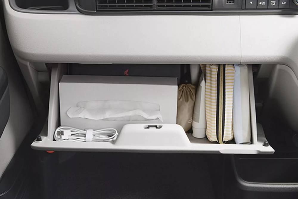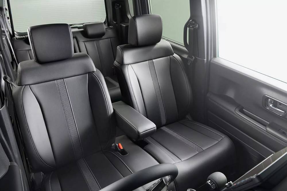 Στο εσωτερικό συναντάμε οθόνη αφής 9 ιντσών για το σύστημα πολυμέσων και ψηφιακό πίνακα οργάνων 7 ιντσών, ενώ όμορφη ρετρό πινελιά συνιστά το νέο τιμόνι των 2 ακτίνων. Η Honda δίνει μεγάλη έμφαση στην πρακτικότητα και την εκμετάλλευση χώρων (προσέξτε πόσο «αέρα» έχουν τα εμπρός από τα πίσω καθίσματα), γεμίζοντας την καμπίνα του N-Box με θήκες για μικροαντικείμενα ενώ χαρακτηριστικό είναι το γεγονός πως όλοι οι επιβάτες (4 τον αριθμό) έχουν στη διάθεσή τους ποτηροθήκη.