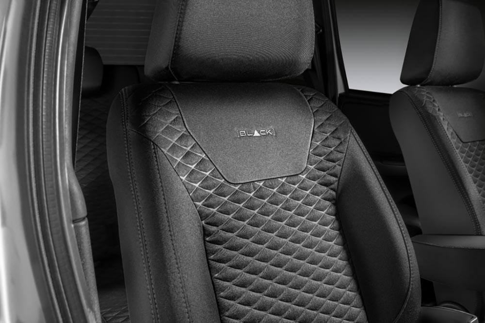 Στο εσωτερικό του διαθέτει μαύρη οροφή και σκουρόχρωμες επενδύσεις στα καθίσματα με το λογότυπο [BLACK]. Στον εξοπλισμό του ανήκουν ABS, αερόσακος οδηγού, ηλεκτρικά παράθυρα, ηλεκτρικά ρυθμιζόμενοι και θερμαινόμενοι καθρέπτες, air condition, θερμαινόμενα εμπρός καθίσματα κ.λπ.