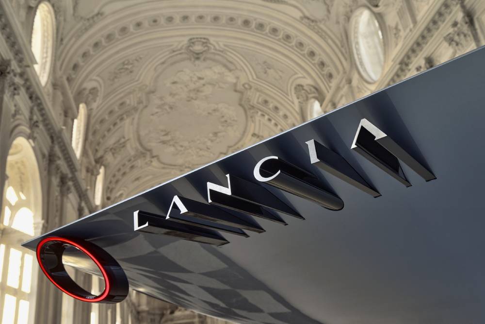 Πάνω από αυτό βρίσκεται η επίσης νέα γραμματοσειρά της Lancia, που μαζί με τη μάσκα ορίζει τη γραφιστική ταυτότητα της αναγέννησης της Lancia στη νέα εποχή της εξηλεκτρισμένης κινητικότητας. Οι απαλές, χυτές γραμμές που θυμίζουν τη σχεδίαση των Aurelia B20 και Flaminia, με την κυκλική οροφή να γεμίζει με φως το εσωτερικό. Στο πίσω μέρος ξεχωρίζουν τα στρογγυλά φωτιστικά σώματα. Θυμίζουν τη Stratos και θα χρησιμοποιηθούν στο νέο Ypsilon, με τα γράμματα της Lancia να βρίσκονται μεταξύ τους. Τέλος στην πλαϊνή όψη ξεχωρίζει το νέο λογότυπο, ενώ ιδιαίτερη πινελιά συνιστά και το απαλό χρώμα Micalized Blue.