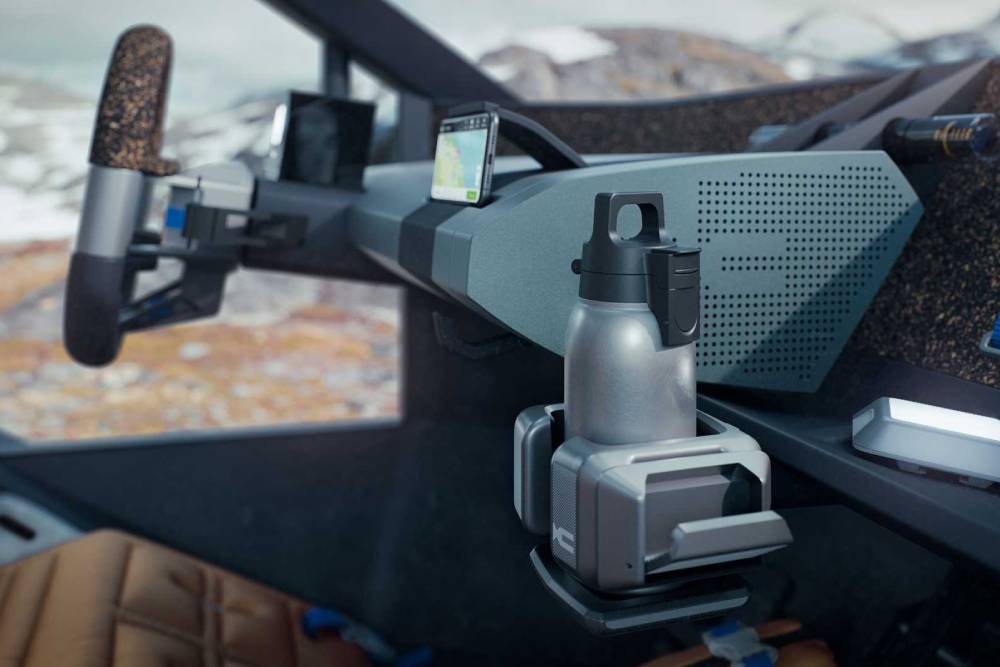 Ελλείψει κρυστάλλων και θυρών, το εσωτερικό αποτελείται από αδιάβροχες και πλενόμενες επενδύσεις. Τα καθίσματα, για παράδειγμα, όχι μόνο είναι αδιάβροχα και αφαιρούμενα, αλλά μπορούν παράλληλα να χρησιμοποιηθούν ως υπνόσακοι! Οθόνη για το σύστημα πολυμέσων δεν υπάρχει, παρά μια υποδοχή στην κορυφή του ταμπλό που συνδέει το smartphone του οδηγού με το αυτοκίνητο, μετατρέποντας το κινητό σε infotainment. Οι «πατέντες» περιλαμβάνουν μέχρι αφαιρούμενη συστοιχία μπαταριών, παρέχοντας τη δυνατότητα αξιοποίησης τους ως γεννήτρια.