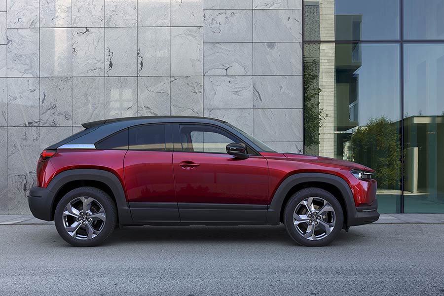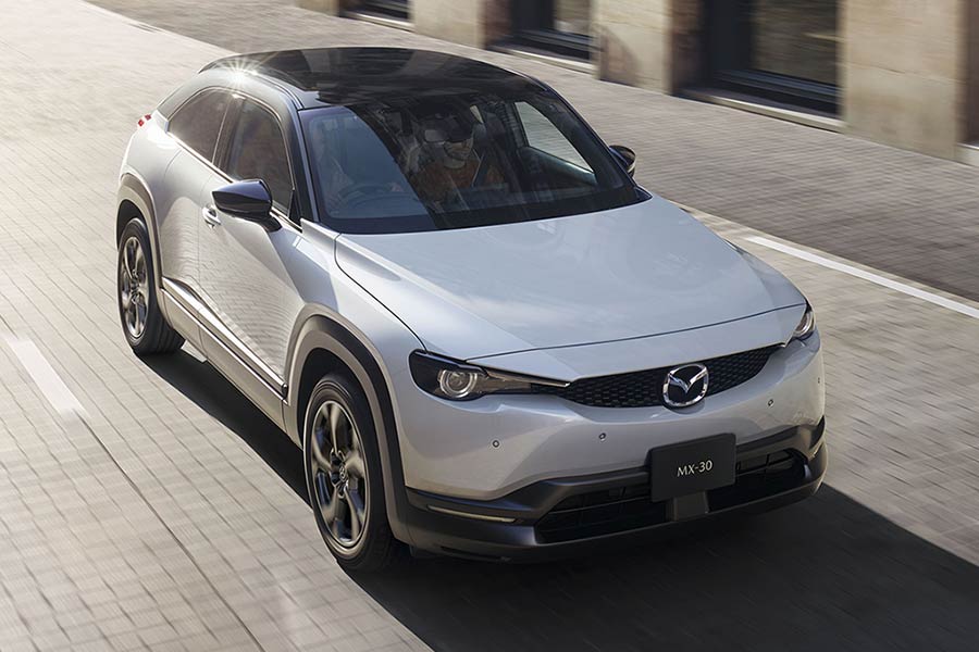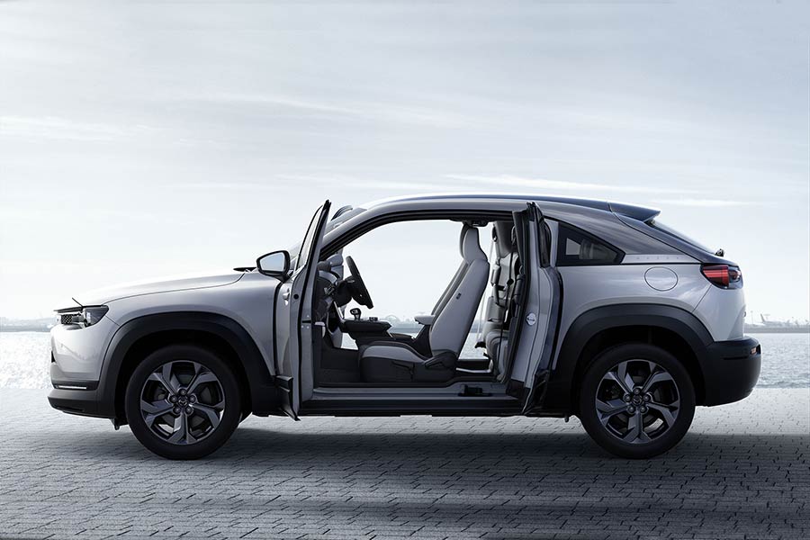 Το πρώτο αμιγώς ηλεκτρικό αυτοκίνητο της Mazda, το MX-30 λανσαρίστηκε στην Ευρώπη και πρόσφατα στην Ελλάδα, όπου οι τιμές του ξεκινούν από 37.590 ευρώ ή από 32.043 ευρώ με τις κρατικές επιδοτήσεις. Το σπορτίφ σχεδιαστικά αμάξωμά του με μήκος 4.395 χλστ. διαθέτει αντικρυστά ανοιγόμενες πόρτες, με τις πίσω να είναι μικρότερες, όπως στο RX-8.