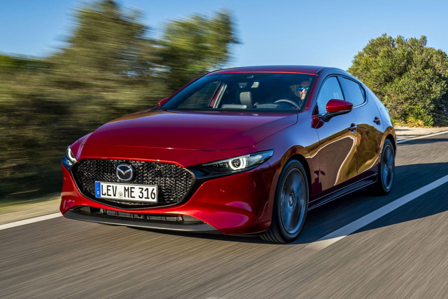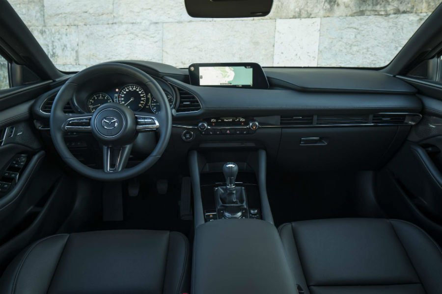 Όλες οι εκδόσεις του 3 εξοπλίζονται με 6αρι χειροκίνητο κιβώτιο, με το αυτόματο ισάριθμων σχέσεων να προσφέρεται προαιρετικά. Επίσης στάνταρ είναι το G-Vectoring Control Plus (GVC Plus), που επενεργεί στα φρένα εν είδει μπλοκέ διαφορικού, ενώ το κορυφαίο Skyactiv-X μπορεί να συνδυαστεί και με το σύστημα τετρακίνησης i-Activ AWD.