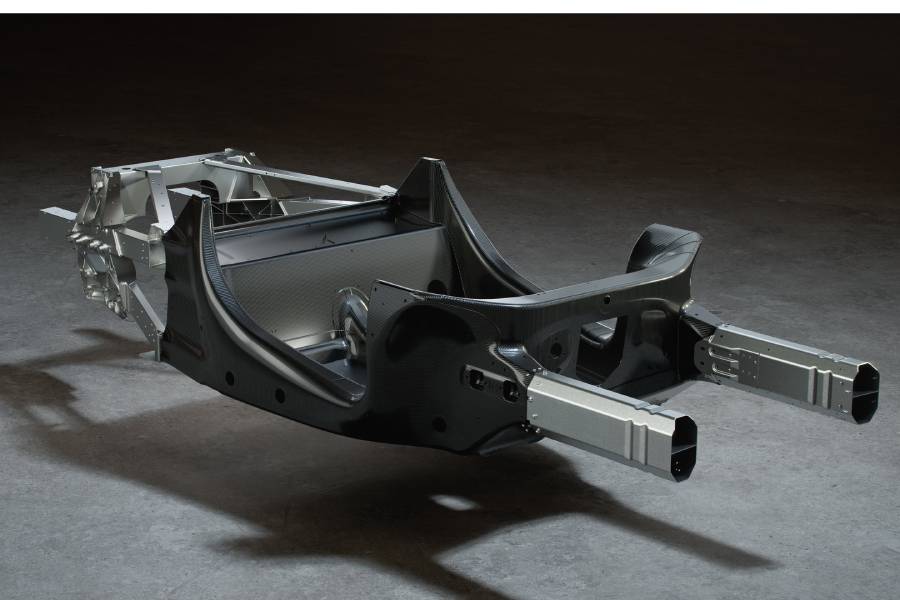 Το σασί είναι ολοκαίνουργιο και δεν έχει σχέση με καμίας άλλης McLaren. Αποτελεί προϊόν τετραετούς εξέλιξης και απαρτίζεται από ανθρακονήματα, ιδίας παραγωγής μάλιστα. Ζυγίζει μόλις 81 κιλά, παρότι διαθέτει έξτρα ενισχύσεις για την μπαταρία! Τα εξαρτήματα του υβριδικού συνόλου (μπαταρία, ηλεκτροκινητήρας κλπ) σταματούν τη ζυγαριά πολύ παραπάνω, στα 130 κιλά! Αυτή η εμμονή με τον περιορισμό του βάρους, οδηγεί σε ένα εντυπωσιακό για υβριδικό αυτοκίνητο απόβαρο, της τάξης των 1.496 κιλών.