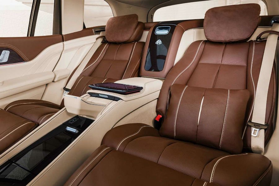 Οι πίσω θέσεις είναι ηλεκτρικά ανακλινόμενες και κλιματιζόμενες, ενώ προσφέρουν και λειτουργία μασάζ. Στην τετραθέσια έκδοση, ανάμεσα στα πίσω καθίσματα υπάρχουν ανακλινόμενα τραπεζάκια και ψυγείο για σαμπάνιες, τη στιγμή που ο χώρος για τα γόνατα των πίσω επιβατών είναι 1.103 χλστ., ενώ μπορεί να φτάσει μέχρι και τα 1.340 χλστ. στο «chauffeur mode», που μετακινεί το κάθισμα του συνοδηγού. Η ηλεκτρική πανοραμική οροφή μπορεί να αλλάζει διαφάνεια ανάλογα με τις προτιμήσεις των επιβατών ενώ συρόμενα σκιάδια στα πλευρικά παράθυρα ανήκουν στο βασικό εξοπλισμό. Επιπλέον, δύο ταμπλέτες δίνουν πρόσβαση στο σύστημα ενημέρωσης και ψυχαγωγίας και στους πίσω επιβάτες που μπορούν να ελέγχουν όλες τις παραμέτρους άνεσης της καμπίνας.