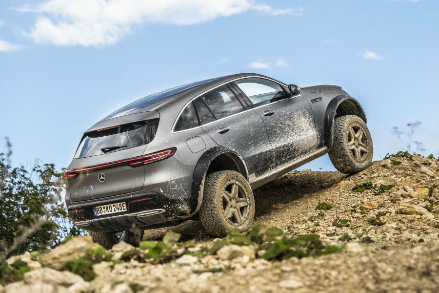 Η ειδική EQC προέρχεται από την ίδια ομάδα που μας έδωσε την E400 All-Terrain 4×4² και διακρίνεται για την εμφάνιση, αλλά και τις εκτός δρόμου δυνατότητες. Η custom ανάρτηση έχει αυξήσει την απόσταση από το έδαφος κατά 153 ολόκληρα χλστ. από το κανονικό μοντέλο, φτάνοντας σχεδόν στα 30 εκατοστά (293 χλστ.) και ξεπερνώντας ακόμα και την G-Class, κατά 58 χλστ.!