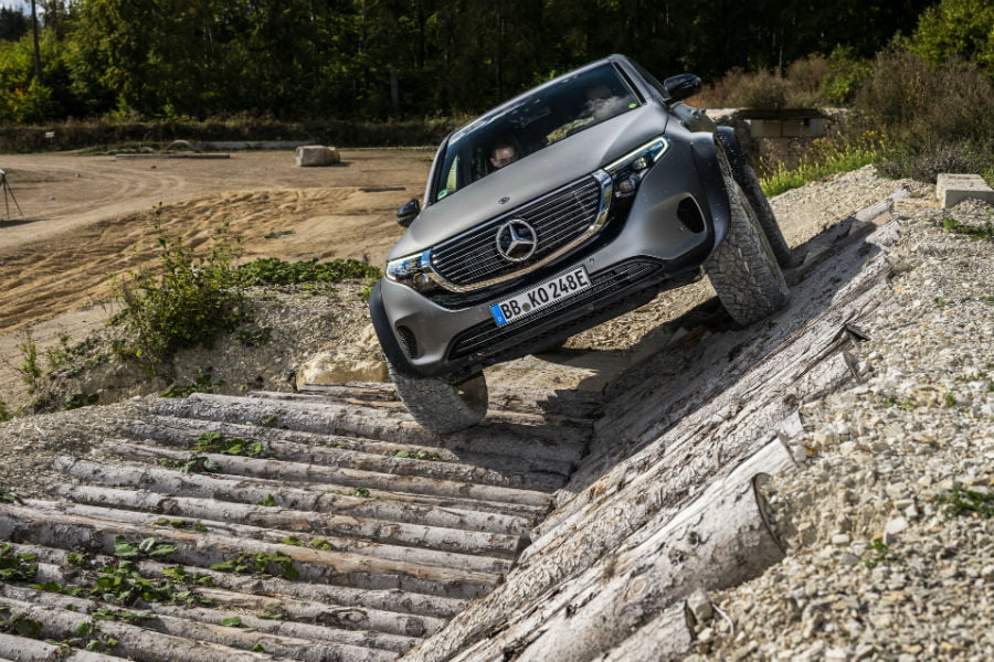Οι εκτός δρόμου δυνατότητες, όπως είπαμε, συγκαταλέγονται στα αδιαμφισβήτητα ατού του γερμανικού «monster truck». To μέγιστο βάθος υδάτινου περάσματος ανέρχεται πλέον στα 40 εκατοστά (+15 σε σχέση με τη νορμάλ EQC), οι γωνίες προσέγγισης και αναχώρησης στις 31,8 και 33 μοίρες (+11,2 και 13 μοίρες αντίστοιχα), ενώ η γωνία ράμπας έχει πάρει 12,6 μοίρες, φτάνοντας τις 24,2. Συγκριτικά, μια G-Class με συμβατική ανάρτηση έχει γωνίες προσέγγισης και αναχώρησης στις 28 μοίρες.
