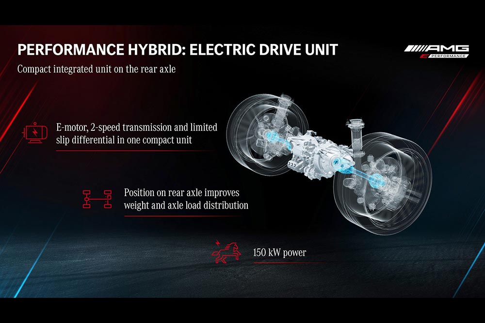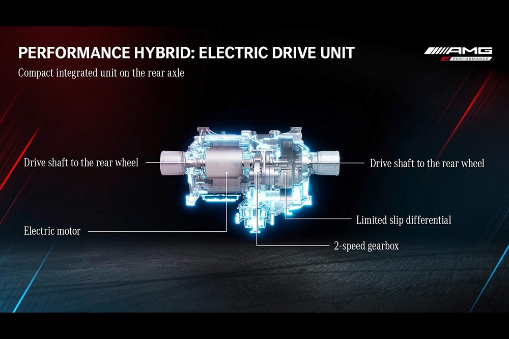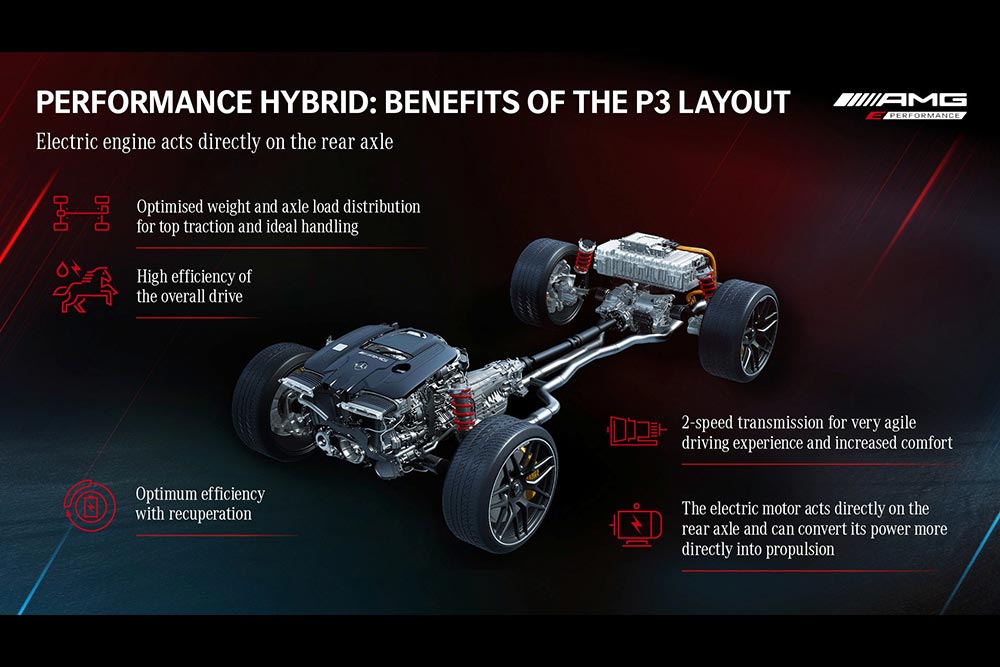 Η Mercedes-AMG GT 63 E είναι ουσιαστικά το πρώτο plug-in υβριδικό μοντέλο της AMG, το οποίο ενσωματώνει τον 8κύλινδρο, 4λίτρο και bi-turbo κινητήρα της εταιρείας με ισχύ 639 ίππων. Αυτός συνεργάζεται με έναν ηλεκτροκινητήρα 204 ίππων που βρίσκεται στον πίσω άξονα. Μάλιστα αυτός ο ηλεκτροκινητήρας ενσωματώνει επίσης ένα κιβώτιο 2 σχέσεων, (το βασικό κιβώτιο είναι το 9τάχυτο της AMG) καθώς και ένα ηλεκτρονικά ελεγχόμενο διαφορικό περιορισμένης ολίσθησης. Έτσι συνδυαστικά ο τυχερός κάτοχος έχει στη διάθεσή του 843 ίππους και 1.470 Nm ροπής. Το 0-100 χλμ./ώρα ολοκληρώνεται σε ρυθμούς αστραπής, σε μόλις 2,9 δλ., με την τελική ταχύτητα να φτάνει τα 316 χλμ./ώρα! Κι όλα αυτά με μέση κατανάλωση, που σύμφωνα με την Mercedes αγγίζει τα 8,6 λτ./100 χλμ.!