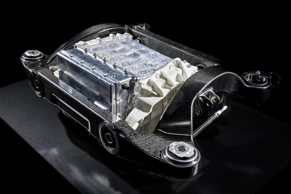 Αρκετές ακόμη πτυχές του σχεδιασμού της μπαταρίας προσθέτουν στην εξαιρετική της απόδοση. Για παράδειγμα, το ελαφρύ καπάκι είναι κατασκευασμένο από ένα μοναδικό, βιώσιμο σύνθετο υλικό που προέρχεται από υπολείμματα ζαχαροκάλαμου, ενισχυμένο με ανθρακονήματα, όπως χρησιμοποιείται στη Formula 1. Η μπαταρία διαθέτει επίσης ενεργή εξισορρόπηση κυψελών, που σημαίνει ότι αντλεί την ενέργεια ομοιόμορφα από τις κυψέλες, ενώ το αυτοκίνητο είναι εν κινήσει, δίνοντάς του μεγαλύτερη αντοχή. Συνολικά, η μπαταρία ζυγίζει περίπου 495 κιλά, συμπεριλαμβανομένου του OneBox (ξεχωριστό διαμέρισμα για τα ηλεκτρικά και ηλεκτρονικά (EE) εξαρτήματα).