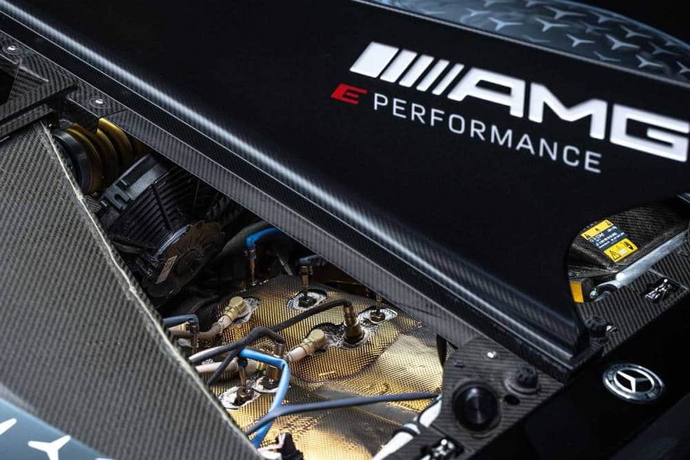 Ο μεγαλύτερος μπελάς για τους ανθρώπους των AMG και AMG High Performance Powertrain Formula 1 ήταν, φυσικά, η τοποθέτηση ενός μοτέρ F1 σε αυτοκίνητο παραγωγής. Το κινητήριο σύνολο του One αποτελείται από έναν υπετροφοδοτούμενο V6 κινητήρα 1.6 λίτρων, συνδυαζόμενο με ηλεκτρικό turbo και 4 ηλεκτροκινητήρες. O βενζινοκινητήρας παράγει 574 ίππους και είναι σύννομος με τις νόρμες Euro 6, έχοντας παράλληλα την ικανότητα να στροφάρει μέχρι τις 11.000 σ.α.λ.
