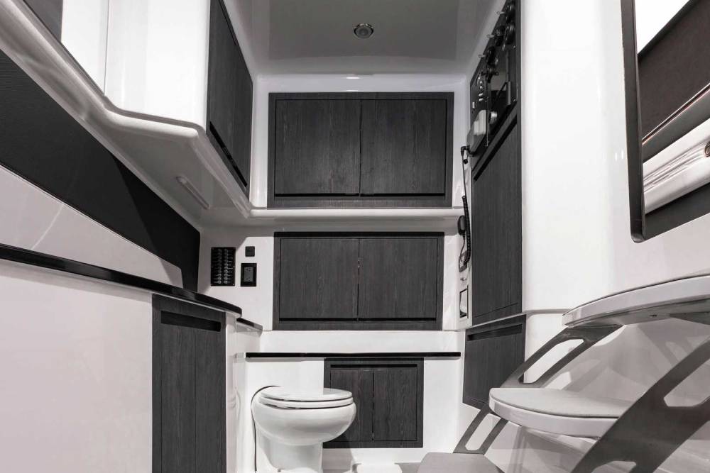 Στο κατάστρωμα συναντάμε ειδικά σχεδιασμένες επενδύσεις, που απωθούν την ηλιακή ακτινοβολία και αποτρέπουν το «κάψιμο» (χρόνιο πρόβλημα των δερμάτινων σαλονιών τους θερινούς μήνες), διατηρώντας τη θερμοκρασία σε φυσιολογικά επίπεδα ακόμα κι όταν επικρατεί καύσωνας. Δυο σειρές των τριών καθισμάτων απολαμβάνουν τη θαλπωρή του hardtop, ενώ άλλοι δυο καναπέδες στο πίσω μέρος φροντίζουν για έναν μέγιστο αριθμό επιβατών που δύναται να ξεπεράσει τους 10. Με τις ταχύτητες που πιάνει το Nighthawk όμως, καλό θα είναι να ασφαλίζονται σωστά στις θέσεις τους.