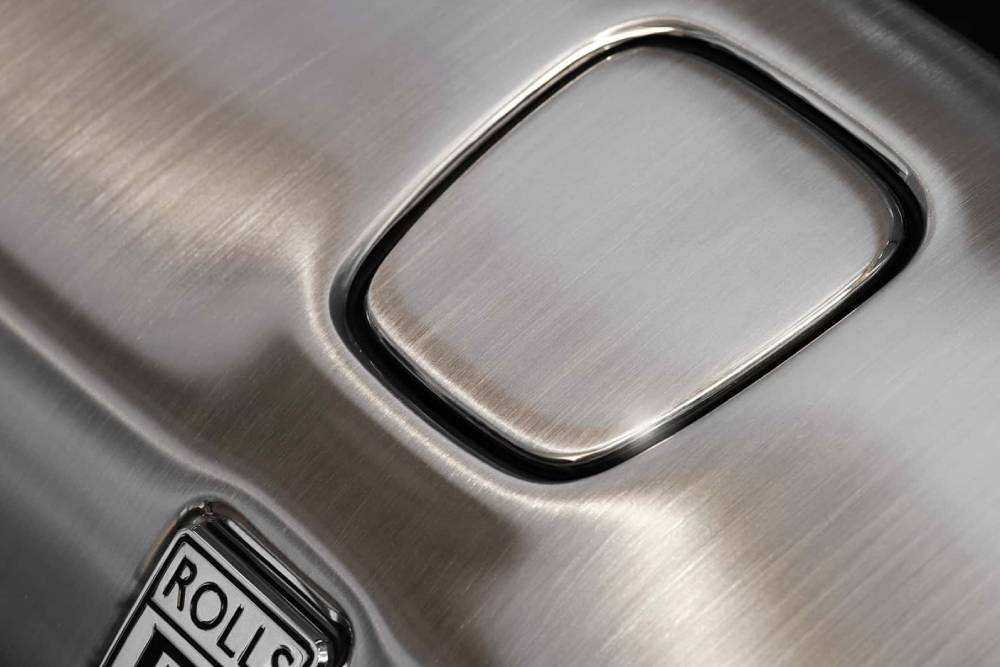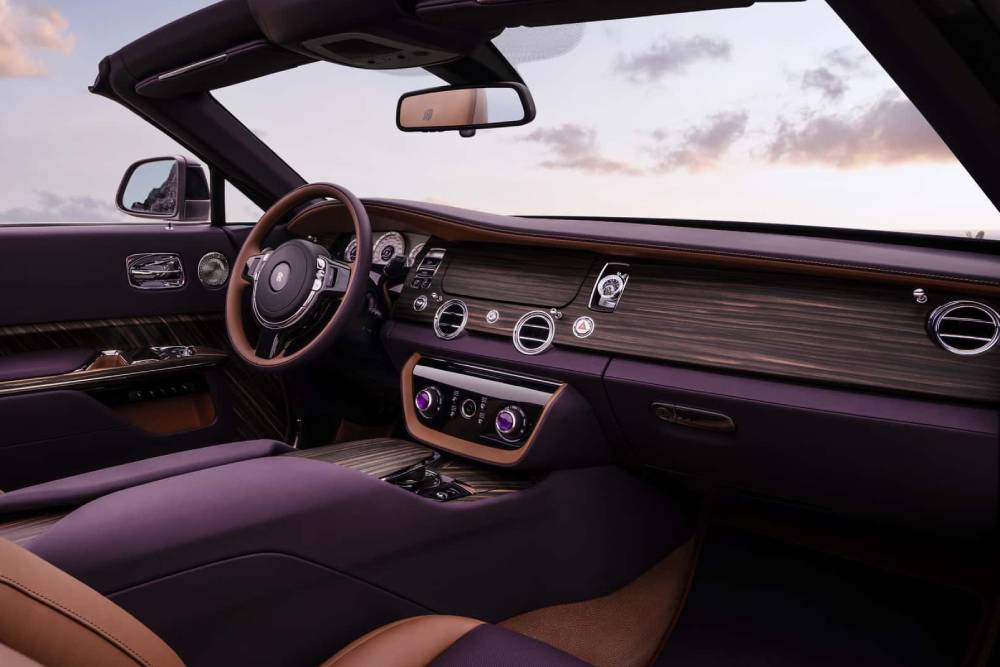 Βαμμένη στο χέρι (πάντα σε Globe Amaranth) είναι η εισαγωγή του προφυλακτήρα, η οποία συν τοις άλλοις αποτελεί προϊόν τρισδιάστατης εκτύπωσης και αποτελείται από 202 διόδους γυαλισμένου αλουμινίου, εννοείται στο χέρι. Αδιαμφισβήτητος πρωταγωνιστής της Amethyst Droptail, ωστόσο, δεν είναι άλλος από την ουρά της. Εκεί όπου, σύμφωνα με τη Rolls-Royce, συναντάμε το μοναδικό πάνελ από ξύλο που παράγει κάθετη δύναμη σε αυτοκίνητο παραγωγής. Οι ξύλινες επενδύσεις κυριαρχούν και στο εσωτερικό, το οποίο πέρασε από εξοντωτικές δοκιμές προκειμένου να διασφαλιστούν στάνταρ αντοχής σε ήλιο, βροχή και αλλαγές θερμοκρασίας, εφάμιλλες με τα πάνελ του αμαξώματος.