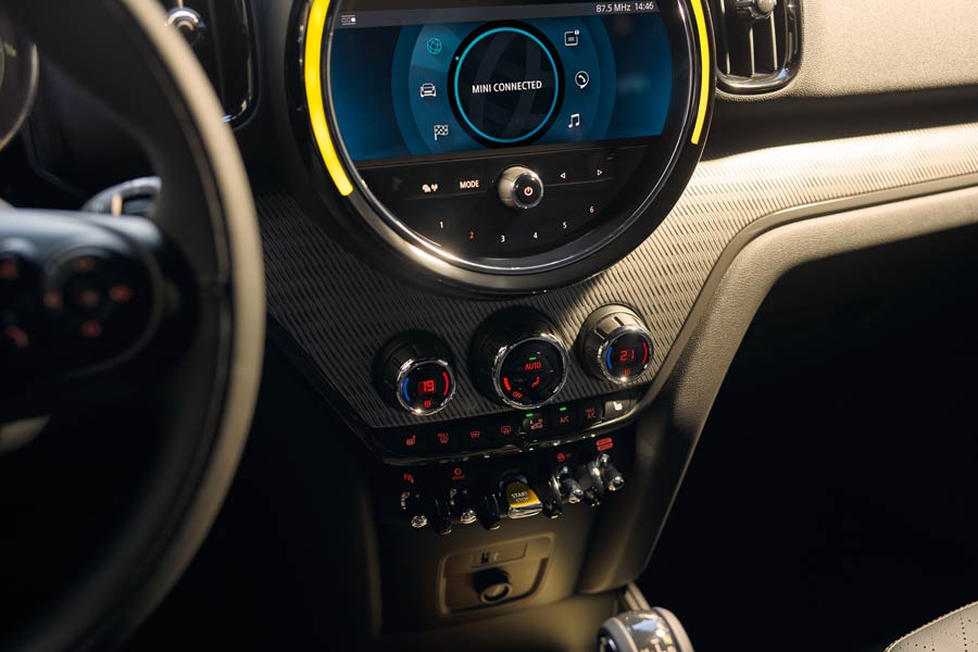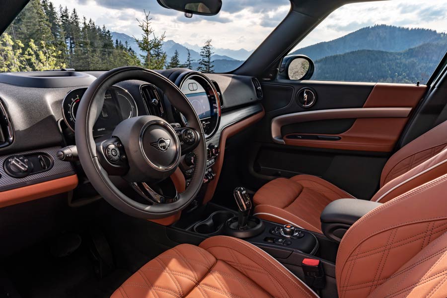 Στο εσωτερικό του ανανεωμένου Countryman υπάρχουν νέες επενδύσεις, διακοσμητικά και χρωματισμοί, καθώς και δερμάτινη επένδυση στο τιμόνι σε όλες τις εκδόσεις. Νέα προσθήκη είναι ο προαιρετικός, μικρός ψηφιακός πίνακας οργάνων των 5 ιντσών, ο οποίος συμπληρώνεται με την οθόνη των 8,8 ιντσών του συστήματος πολυμέσων στο κέντρο του ταμπλό.