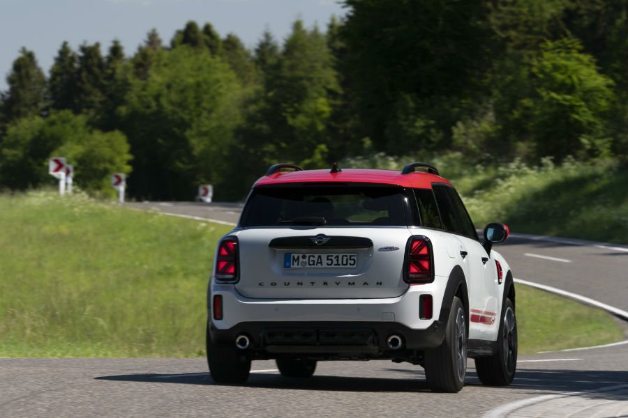 Μπροστά, το JCW Countryman διακρίνεται για τον ανασχεδιασμένο προφυλακτήρα και τα διαφορετικά φώτα ημέρας LED, ενώ πίσω κεντρίζουν τα βλέμματα τα LED στα φανάρια, που αναπαριστούν τη σημαία του Ηνωμένου Βασιλείου. Οι απολήξεις της εξάτμισης είναι πλέον μεγαλύτερες και το σήμα «COUNTRYMAN» στην πίσω πόρτα, επίσης ανασχεδιασμένο.