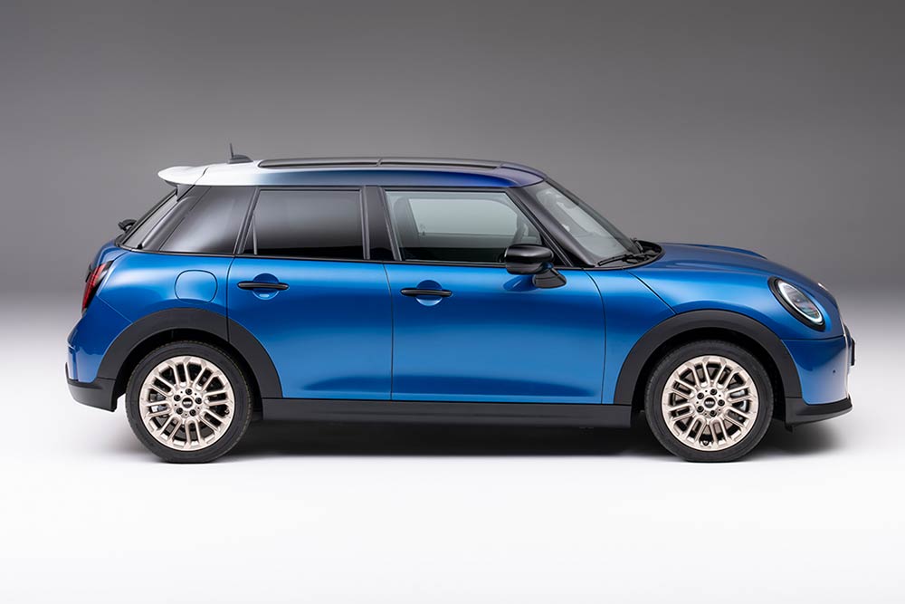 Το νέο 5θυρο MINI Cooper διατίθεται σε έντεκα χρώματα αμαξώματος. Για την οροφή, υπάρχει η δυνατότητα επιλογής ανάμεσα σε τρία χρώματα που δημιουργούν αντίθεση, στο χρώμα του αυτοκινήτου και στη χαρακτηριστική multi-tone οροφή με χρωματική διαβάθμιση. Το αυτοκίνητο μπορεί να εξατομικευτεί μέσα από τέσσερις διαφορετικές εκδόσεις: τη βασική Essential, την Classic, την Favoured με ασημί φινιρίσματα και την πιο σπορ JCW (John Cooper Works). Η διάμετρος των ελαστικών είναι μεγαλύτερη σε σχέση με εκείνη του απερχόμενου μοντέλου, τονίζοντας το φαρδύ στήσιμο του νέου 5θυρου MINI Cooper. Οι αεροδυναμικής σχεδίασης ζάντες με διάμετρο από 16 έως και 18 ίντσες προσφέρουν πλέον περισσότερες επιλογές.