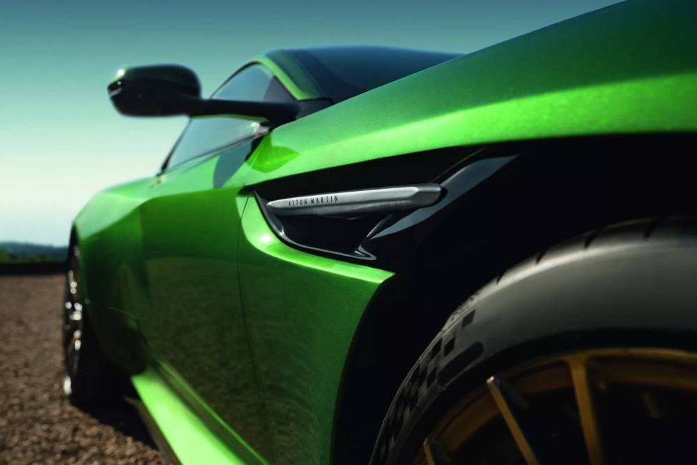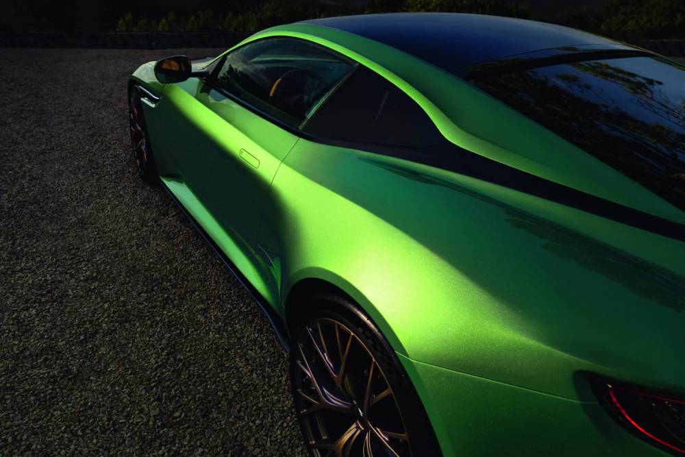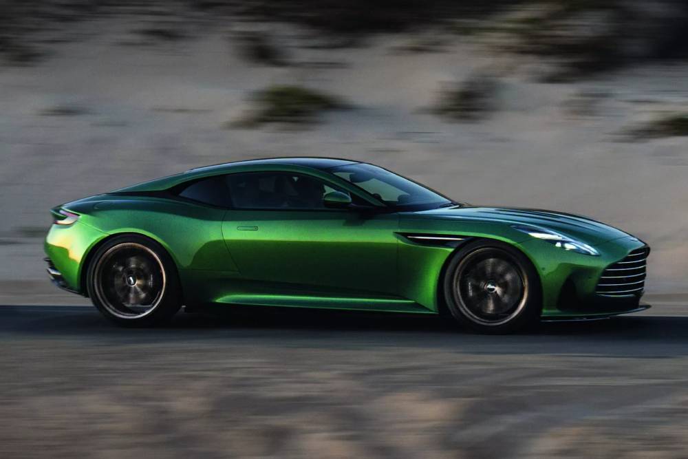 H DB12 είναι κατά βάση ίδια με την DB11, όπως φαίνεται και εμφανισιακά. Η μάσκα είναι μεγαλύτερη, ο εμπρός προφυλακτήρας λίγο διαφορετικός, το σήμα ανασχεδιασμένο και τα φωτιστικά σώματα LED (όλα, όχι μόνο τα ημέρας), αλλά από το ύψος της πρώτης κολώνας και πίσω οι διαφορές είναι αμελητέες. Οι χρυσαφί ζάντες των 21 ιντσών (20 στην DB11) κάνουν όλη τη διαφορά, μειώνοντας παράλληλα τη μη αναρτώμενη μάζα κατά 8 κιλά. Τα Michelin Pilot 5s που τις περιβάλλουν είναι ειδικά εξελιγμένα για την DB12 και έχουν ηχοαπορροφητικό αφρό, μειώνοντας το θόρυβο κύλισης στην καμπίνα έως 20%.