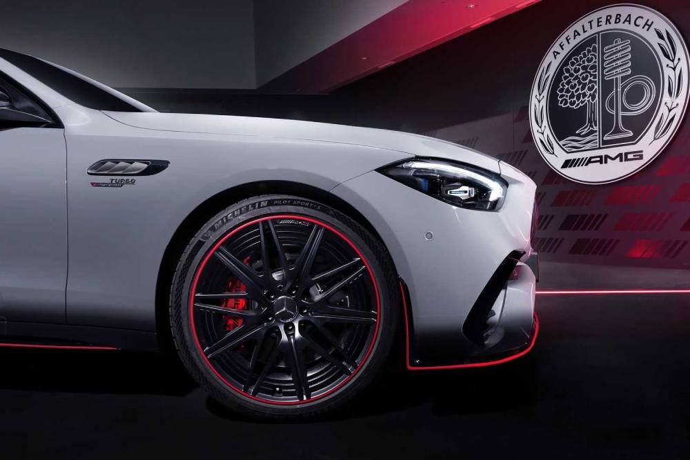 Η C 63 S E Performance F1 Edition ξεχωρίζει εξωτερικά από το αποκλειστικό χρώμα Manufaktur Alpine Grey Uni, που σκουραίνει στα χαμηλά σημεία του αμαξώματος και φιλοξενεί στο πλάι αυτοκόλλητα της AMG. To AMG Aerodynamics Package είναι στάνταρ, αποτελούμενο από μεγαλύτερο splitter εμπρός, εντονότερες πλαϊνές ποδιές και μεγαλύτερο διαχύτη, όλα τους με την πινελιά που χαρίζει το κόκκινο σιρίτι. Το AMG Night Package είναι επίσης στάνταρ, ντύνοντας στα μαύρα τα καλύμματα των καθρεπτών, τη μάσκα, τις απολήξεις της εξάτμισης και το περίγραμμα των παραθύρων. Μαύρες είναι και οι νέες σφυρήλατες ζάντες των 20 ιντσών, με τις ακτίνες σε σχήμα «V» και τον δακτύλιο σε κόκκινη απόχρωση.