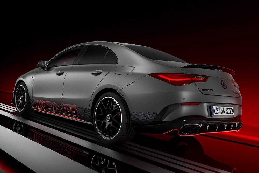 Η CLA 45 S Edition 1 ξεχωρίζει από το Manufaktur Mountain Grey Magno χρώμα και το συνδυασμό του με τα μαύρα-κόκκινα αυτοκόλλητα στις πόρτες, τις κόκκινες λεπτομέρειες στο αεροδυναμικό πακέτο (splitter, ακροπτερύγια, spoiler, διαχύτης), τους καθρέπτες και τις δαγκάνες των φρένων, ενώ γάντι ταιριάζουν και οι μαύρες πολυάκτινες μαύρες ματ 19άρες ζάντες. Στο εσωτερικό δεσπόζει η κλασική για Mercedes-AMG εικόνα, με δέρμα Nappa και alcantara ολούθε, κόκκινο ambient φωτισμό, τα κατάλληλα γραφικά στο σύστημα πολυμέσων MBUX και τον ψηφιακό πίνακα οργάνων, τα δυο κουμπιά στις βάσεις των ακτινών του τιμονιού για προγράμματα λειτουργίας και αναρτήσεις. Προαιρετικά βάφονται και οι ζώνες ασφαλείας στο χρώμα των ραφών, με κόκκινο ή κίτρινο χρώμα να αναλαμβάνει το look.