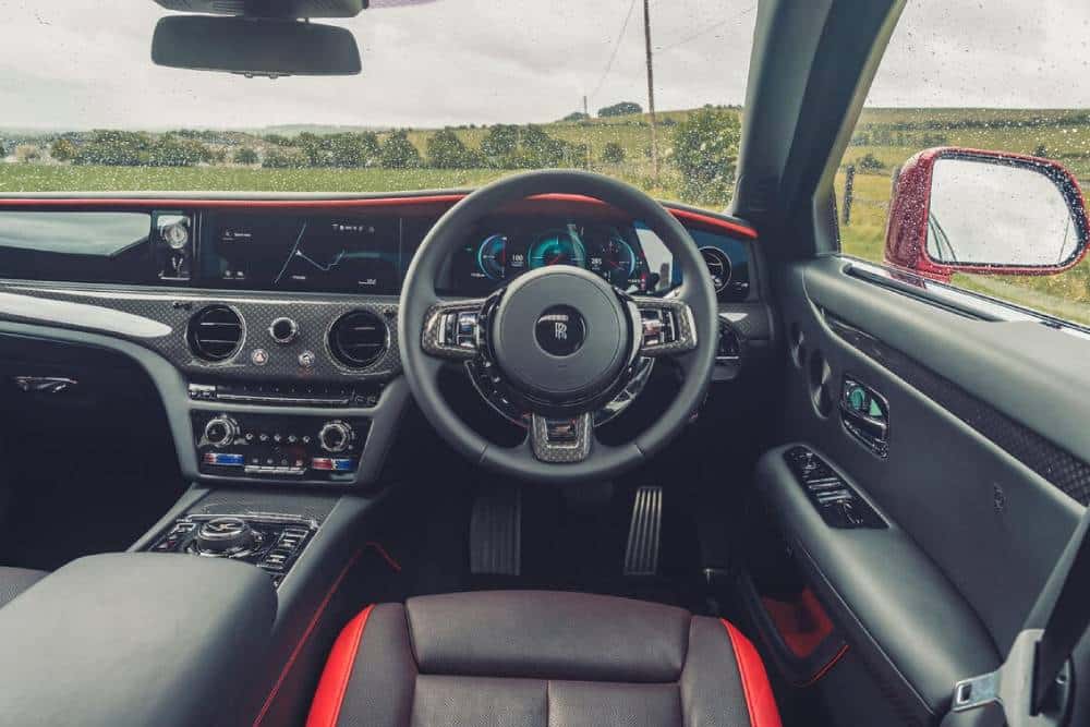 Η Ghost Black Badge πάντως δεν είναι μόνο μια έκδοση προσηλωμένη αποκλειστικά στην εμφάνιση. Η αερανάρτηση διαθέτει νέες ρυθμίσεις, που μειώνουν τις κλίσεις στις στροφές, και ο 6.75 V12 twinturbo αποδίδει 30 άλογα και 50 Nm περισσότερα, στέλνοντας συνολικά 600 ίππους και 900 Nm στους πίσω τροχούς. Το 8άρι αυτόματο κιβώτιο της ZF διαθέτει πλέον κουμπί «Low», το οποίο δεν αφορά κοντές σχέσεις αλλά μείωση στο χρόνο αλλαγής. Μαζί με τις ταχύτερες εναλλαγές μεταξύ των γραναζιών, πατώντας το Low «αγριεύει» ο ήχος του κινητήρα. Με αυτό επιλεγμένο, η επιπλέον δύναμη του V12 επιταχύνει τους 2,5 τόνους της Ghost στα πρώτα 100 χλμ./ώρα εντός 4,5 δλ. (από 4,8 δλ. της κανονικής, 250 χλμ./ώρα ηλεκτρονικά περιοριζόμενη τελική και στις δυο).