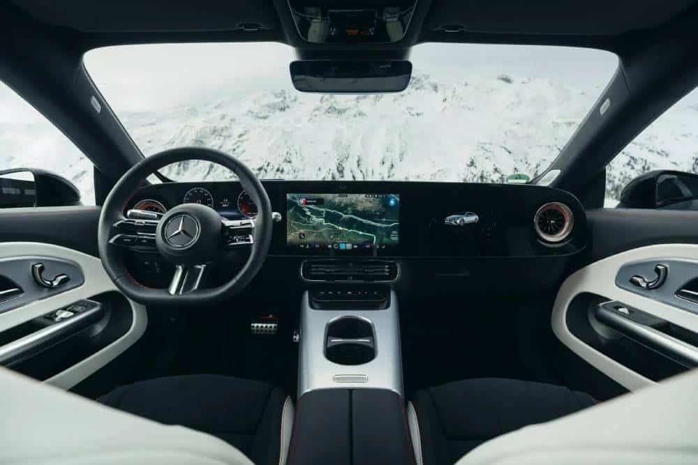 Εμφανισιακά και εσωτερικά δεν αλλάζει κάτι. Από πλευράς διαστάσεων έχει μήκος 4.723 χλστ. (+35 χλστ. από την προγενέστερη), πλάτος 1.855 χλστ. (+25 χλστ.), ύψος 1.468 χλστ. (+29 χλστ.) και μεταξόνιο 2.790 χλστ. (+61 χλστ.). Μπροστά κυριαρχεί το νέο πάνελ με το φωτιζόμενο μοτίβο Mercedes-Benz, αποτελούμενο από τα 142 μικρά αστέρια και το μεγάλο εμβληματικό αστέρι στο κέντρο. Στο εσωτερικό ξεχωρίζει αμέσως η προαιρετική οθόνη Superscreen MBUX, αποτελούμενη από μια οθόνη οδηγού 10,25 ιντσών, την κεντρική οθόνη των 14 ιντσών και μία ακόμα οθόνη 14 ιντσών για το συνοδηγό.