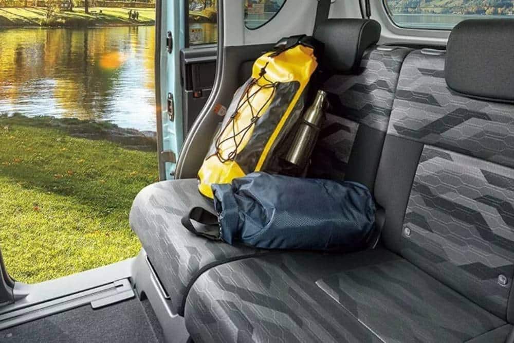 Στο εσωτερικό συναντάμε οθόνη αφής 9,0 ιντσών, η οποία πλαισιώνεται από ειδικές αδιάβροχες επενδύσεις σε καθίσματα και αντιχαρακτικές στο ταμπλό, αλλά και τον χώρο αποσκευών. Κατ’ αυτό τον τρόπο η φορτοεκφόρτωση επίφοβων αντικειμένων (όπως πτυσσόμενες καρέκλες, ειδών camping κλπ) γίνεται δίχως το φόβο γρατζουνιών.