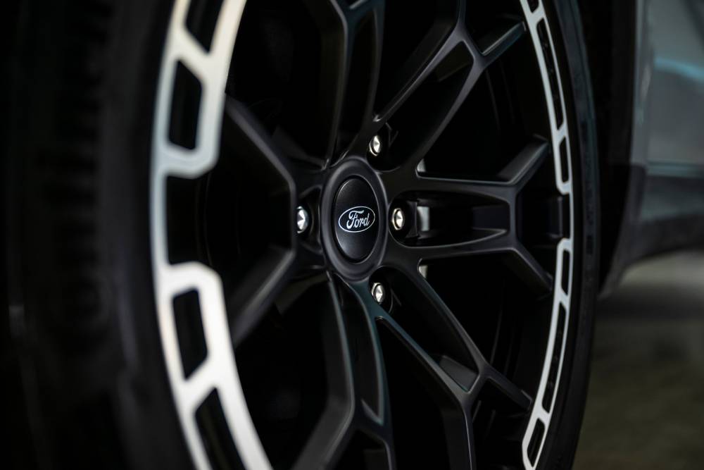 Οι αποκλειστικές ζάντες των 21 ιντσών είναι οι μεγαλύτερες που έχουν μπει ποτέ σε Ranger, συνδυαζόμενες με χαμηλοπρόφιλα ελαστικά 275/45 R21. Οι εντυπωσιακοί αυτοί τροχοί φιλοξενούνται σε φουσκωμένα φτερά, που αυξάνουν το πλάτος του αυτοκινήτου κατά 82 χλστ. (2.089 χλστ. στο σύνολο) Επίσης, κατά 40 χλστ. αυξάνονται τα μετατρόχια εμπρός-πίσω, με στόχο τη βελτίωση της πρόσφυσης και της σταθερότητας. Η ανάρτηση βελτιστοποιήθηκε για να επιτευχθεί η ιδανική ισορροπία ανάμεσα στον απόλυτο έλεγχο και την άνεση. Έτσι, στο Ranger MS-RT περιλαμβάνει διαφορετική ρύθμιση πίσω, πιο σφιχτά αμορτισέρ εμπρός, ενώ συνολικά το ύψος είναι τώρα μειωμένο κατά 40 χλστ. Όλα αυτά εξασφαλίζουν στο νέο Ranger MS-RT πιο σπορτίφ εμφάνιση, σε συνδυασμό με μεγαλύτερη ακρίβεια και σταθερότητα στις στροφές.
