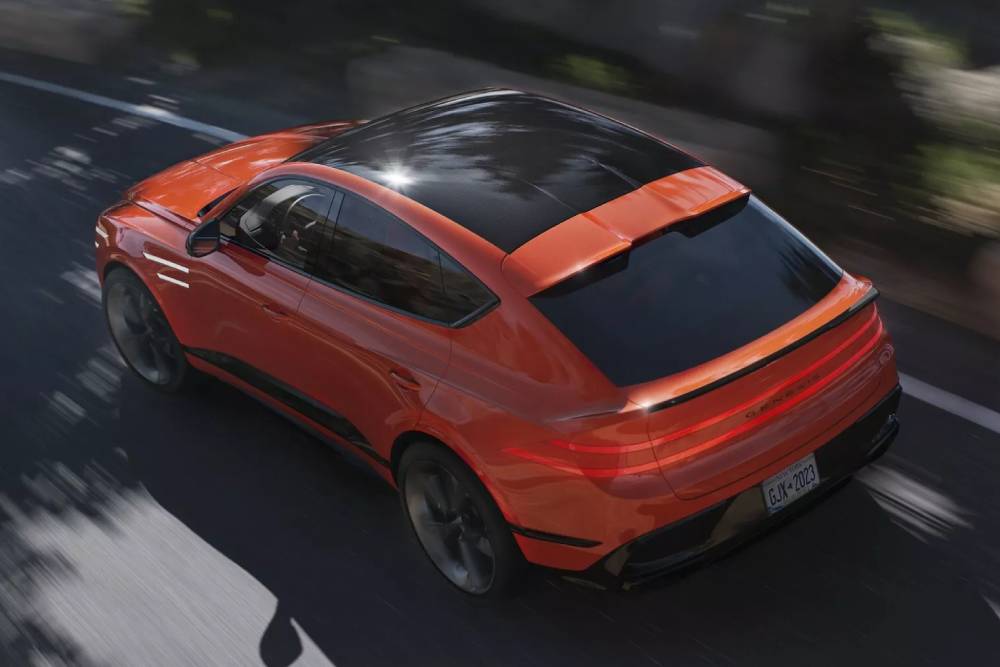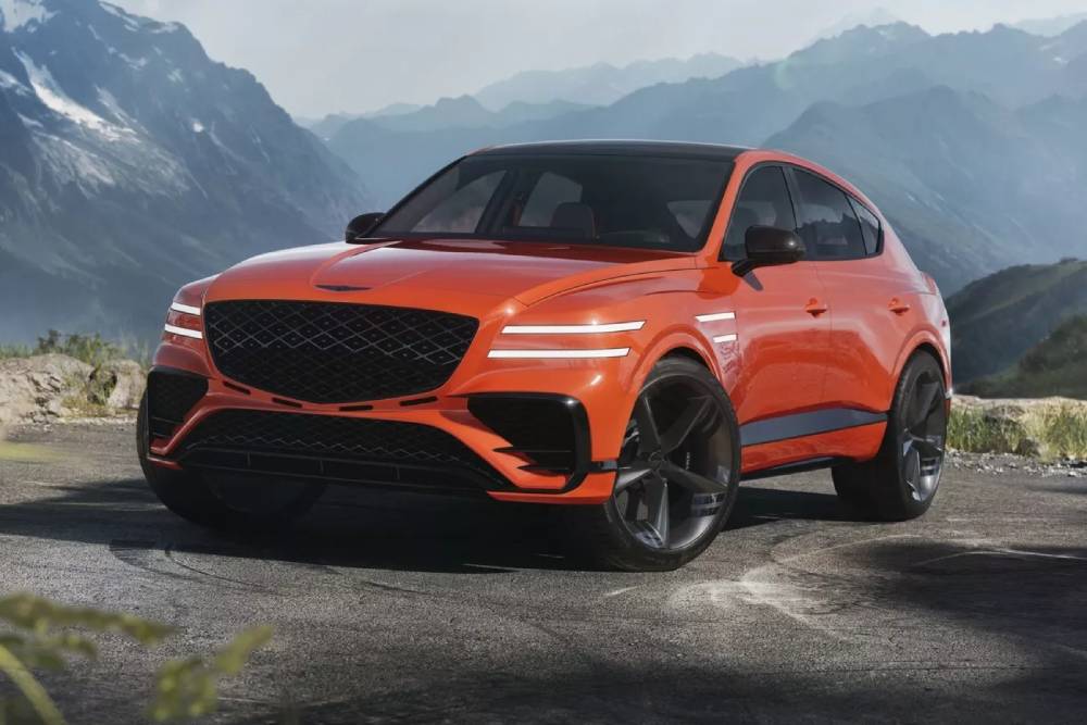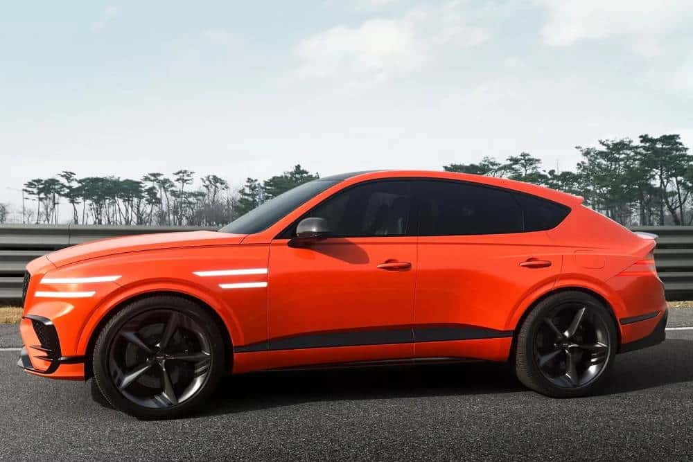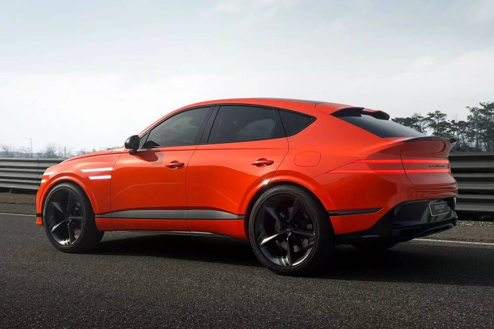 Η κουπέ εκδοχή του GV80 συνδυάζει στοιχεία τόσο από την SUV ναυαρχίδα της Genesis, όσο και από το περσινό πρωτότυπο X Speedium Coupe. Η μάσκα είναι μεγαλύτερη και πιο αιχμηρή σε σχέση με το GV80, ενώ και οι εισαγωγές στον προφυλακτήρα είναι σημαντικά πιο επιθετικές. Μεγάλη αλλαγή συνιστούν και τα πολύ λεπτά LED φωτιστικά σώματα, που πλαισιώνονται από μια τετράδα στα φτερά (δυο ανά πάνελ) και δημιουργούν μια φαντασμαγορική εικόνα, σε συνδυασμό με το φανταχτερό πορτοκαλί Magma χρώμα και τις 20άρες ζάντες.