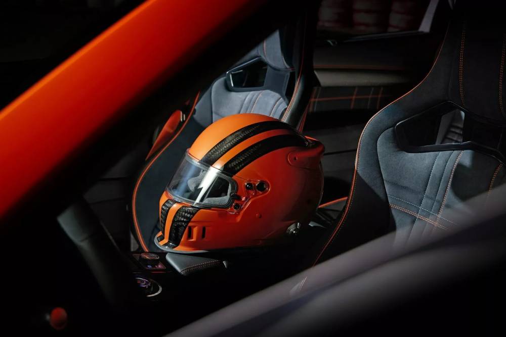 Το εσωτερικό είναι καθαρά τετραθέσιο, με ισάριθμα ξεχωριστά μπάκετ να ντύνονται σε συνδυασμό μαύρου-πορτοκαλί. Ίδιου χρώματος (πορτοκαλί) είναι και οι ζώνες ασφαλείας, αλλά και το κράνος που συνοδεύει την καμπίνα. Δέρμα και suede καλύπτουν τη συντριπτική πλειονότητα των επενδύσεων, με το ταμπλό και το τιμόνι να προέρχονται από το κανονικό GV80. Μοναδική πινελιά, δε, το roll cage.