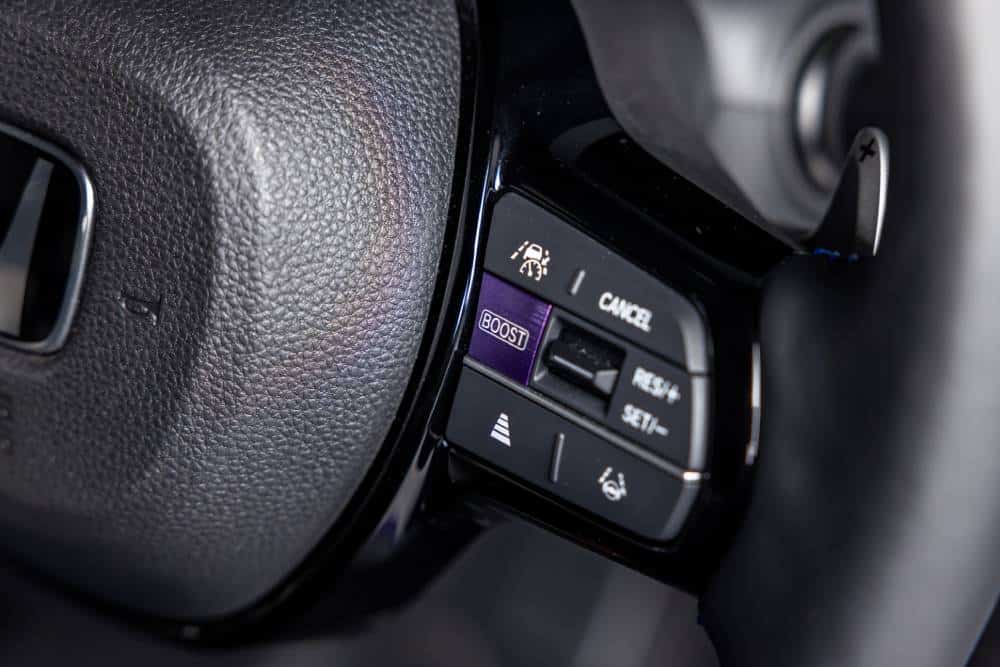 Οι 15άρες ζάντες σε ματ φινίρισμα Berlina Black δένουν υπέροχα με το Boost Violet Pearl μωβ χρώμα του αμαξώματος, το οποίο είναι αρκετά μεγαλύτερο σε σχέση με το N-One. Το Super-One φτάνει τα 3.589 χλστ. σε μήκος, ξεπερνώντας κατά 194 χλστ. το N-One, ενώ μεγαλύτερο είναι γενικά σε κάθε διάσταση πλην μεταξονίου (1.573 χλστ. πλάτος/+98 χλστ., 1.616 χλστ. ύψος/+71 χλστ., κοινά τα 2.520 χλστ. μεταξύ των αξόνων). Στο εσωτερικό, η διάταξη του ταμπλό μεταφέρεται ως επί το πλείστον από το N-One e:, αλλά το Super-N προσθέτει τις δικές του πινελιές με μπάκετ καθίσματα, μωβ λεπτομέρειες και αναβαθμισμένα γραφικά για τον ψηφιακό πίνακα οργάνων 7 ιντσών, που γίνεται ολόκληρος στροφόμετρο όταν επιλεγεί η ρύθμιση Boost. Στο ίδιο κλίμα και το σύστημα Active Sound Control, που μιμείται αλλαγές ταχυτήτων και ήχους θερμικού κινητήρα μέσω του στάνταρ premium ηχοσυστήματος της Bose με τα 8 ηχεία.
