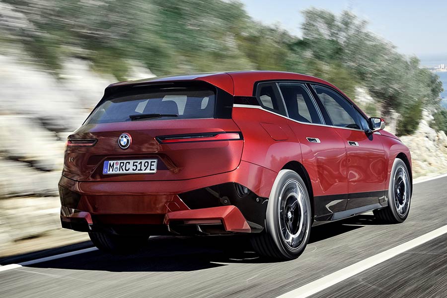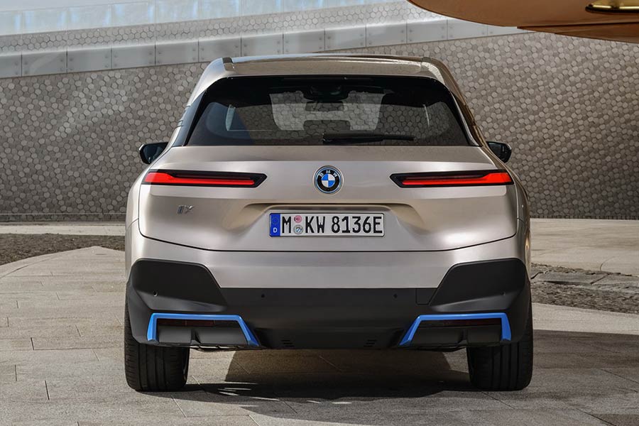 Το iX έχει παρεμφερές μήκος και πλάτος με την X5, ισοφαρίζοντας σχεδόν την X6 σε ύψος και διαθέτοντας τροχούς στη διάσταση της X7. Όσο όμοια είναι σε διαστάσεις με τα θερμικά SUV της BMW, τόσο ξεχωρίζει εμφανισιακά. Στο κέντρο του εμπρός μέρους κυριαρχούν τα κάθετα τοποθετημένα «νεφρά» αλλά και τα φωτιστικά σώματα, που είναι τα λεπτότερα σε BMW παραγωγής όλων των εποχών. Οι γραμμές εκφράζουν μια «αθέατη» τεχνοτροπία, με τις χειρολαβές των θυρών να είναι κρυφές (λειτουργούν πιέζοντας ένα μπουτόν), το στόμιο πλήρωσης υγρού πλύσης παρμπρίζ κάτω από το λογότυπο της BMW στο καπό, τα πλαϊνά παράθυρα χωρίς πλαίσιο και την πίσω πόρτα δίχως αρμούς, εκτεινόμενη σε όλο το πίσω τμήμα. Εκεί ξεχωρίζουν τα επίσης πολύ λεπτά φανάρια, ενώ ανάμεσά τους το σήμα της BMW φιλοξενεί την κάμερα οπισθοπορείας.
