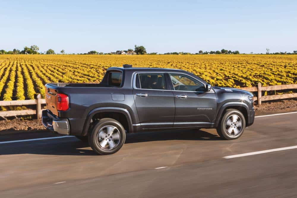Το Rampage έχει τις ρίζες του στο πάτωμα Small Wide 4×4 (SUSW), που βασίζει τόσο το συγγενικού προσανατολισμού Fiat Toro όσο και την Alfa Romeo Tonale! To νέο «κριάρι» αποτελεί τον μικρό αδελφό του 1500, κάτι που φαίνεται και από την εμφάνιση. Σχεδιαστικά οι γραμμές του αμερικανικού best seller έχουν μεταφερθεί σχεδόν αυτούσιες, αλλά σε πιο συμπαγές περιτύλιγμα. Ενώ το 1500 αγγίζει τα 6 μέτρα σε μήκος (5.916 χλστ. το απλό, 6.143 χλστ. το Long), το Rampage κυμαίνεται λίγο πάνω από τα 5. Το μήκος φτάνει τα 5.028 χλστ., το πλάτος τα 1.886 χλστ., το ύψος τα 1.780 χλστ. και το μεταξόνιο τα 2.944 χλστ., με τη διαφορά στο μήκος από το Ford Ranger για παράδειγμα να ξεπερνά τα 340 χλστ. (5.360 χλστ.). H χωρητικότητα της καρότσας ανέρχεται σε 980 λίτρα, συν άλλα 34,5 λίτρα για μικροαντικείμενα στο εσωτερικό, με το μέγιστο ωφέλιμο φορτίο του χώρου φόρτωσης να φτάνει τα 750 κιλά στη βενζινοκίνητη και τα 1.015 κιλά στη ντίζελ έκδοση.
