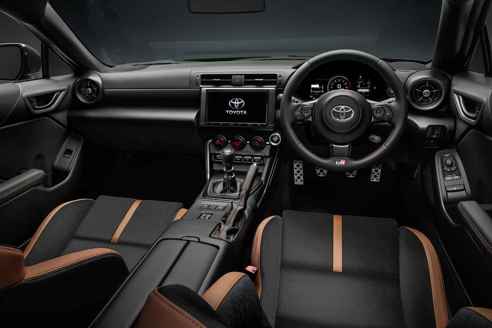 Το φρεσκαρισμένο GR86 οπτικά ξεχωρίζει μόνο για τη νέα έκδοση Ridge Green Limited, που ντύνεται σε βαθύ πράσινο χρώμα και βάφει τις 18άρες ζάντες σε χρυσαφί χρώμα. Κατά τα άλλα, ουδεμία αλλαγή. Το limited edition GR86 σε κερδίζει και με το εσωτερικό του, όπου οι μπρονζέ αποχρώσεις στα μπάκετ καθίσματα δίνουν έναν upper class αέρα. Διαφορετικά, ο συνδυασμός μαύρου-κόκκινου χαρακτηρίζει την καμπίνα στις υπόλοιπες εκδόσεις, πλην της βασικής. Λίγες αισθητικές διαφοροποιήσεις μέσα-έξω, καθότι -όπως είπαμε- η Toyota επικεντρώθηκε στη μελέτη του τεχνικού σκέλους.
