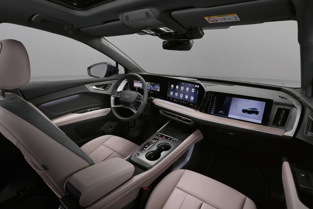 Στην καμπίνα, το αναβαθμισμένο Q4 e-tron κάνει ένα σημαντικό άλμα σε επίπεδο άνεσης, τεχνολογίας και ποιότητας. Στο επίκεντρο βρίσκεται το νέο digital stage, με πανοραμική διάταξη οθονών που συνδυάζει ψηφιακό πίνακα οργάνων 11,9 ιντσών και την οθόνη αφής MMI 12,8 ιντσών. Η οθόνη MMI διαθέτει μεγάλα εικονίδια, ώστε οι λειτουργίες και οι υπηρεσίες να είναι άμεσα ορατές και εύκολα προσβάσιμες. Για πρώτη φορά στην κατηγορία, διατίθεται προαιρετικά οθόνη συνοδηγού 12 ιντσών. Πρόκειται για τη μεγαλύτερη οθόνη συνοδηγού που έχει τοποθετηθεί ποτέ σε Audi και διαθέτει εξατομικευμένη εικόνα αναμονής. Όταν δεν επιλέγεται η οθόνη συνοδηγού, η περιοχή αυτή εμπλουτίζεται με premium διακοσμητικές επιφάνειες. Το νέο One Connected Infotainment αναβαθμίζει τις λειτουργίες άνεσης και ψυχαγωγίας.