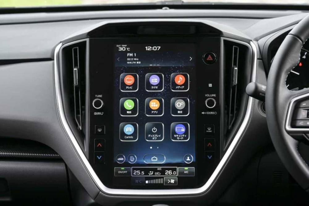 Σαφώς μεγαλύτερες οι διαφορές εντός, όπου η κάθετη οθόνη αφής των 11,6 ιντσών δεσπόζει στο ταμπλό και αναβαθμίζει ολιστικά το διάκοσμο της καμπίνας. Όλως περιέργως απουσιάζει ο ψηφιακός πίνακας οργάνων, που έχουμε δει στα Levorg και WRX.