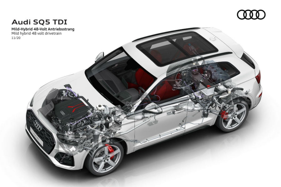 Οι παραπάνω αναβαθμίσεις, σύμφωνα με την Audi, εξασφαλίζουν ευρύτερη καμπύλη ροπής και χαμηλότερη κατανάλωση. Οι αριθμοί κάνουν λόγο μέχρι και έως 0,7 λίτρα/100 χλμ. λιγότερα σε σχέση με πριν, έχοντας το 48βολτο σύστημα να προσθέτει 11 ίππους όταν χρειαστεί και να επιτρέπει το coasting (κίνηση με σβηστό μοτέρ) μέχρι 40 δλ. non stop. Ο κινητήρας αποδίδει 341 ίππους και 700 Nm ροπής μεταξύ 1.750 και 3.250 σ.α.λ., συνεργαζόμενος με το 8άρι Τiptronic και σύστημα quattro. Τα 100 χλμ./ώρα από στάση έρχονται σε 5,1 δλ. και η τελική περιορίζεται ηλεκτρονικά στα 250 χλμ./ώρα.