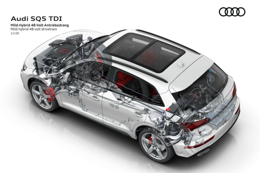 Πολύ περισσότερο, το κάνουν οι βελτιώσεις στον κινητήρα. Ο 3.0 V6 TDI διαθέτει πλέον σφυρήλατα πιστόνια, αντί αλουμινίου, για μειωμένες θερμικές απώλειες και νέα πιεζοηλεκτρικά μπεκ, αλλά και νέο intercooler τοποθετημένο ανάμεσα στο «V» του κινητήρα. Oι συμπιεστές των τούρμπο, τέλος, έχουν μικρότερες φτερωτές και η πολλαπλή εξαγωγής διαθέτει επιπλέον θερμομόνωση. Όλα αυτά συνδυάζονται με ηλεκτρικό κομπρέσορα EPC, που παίρνει ισχύ από το ήπιο υβριδικό σύστημα των 48 Volt και ενισχύει τη συμπίεση του καύσιμου μίγματος στις χαμηλές στροφές, εξαλείφοντας έτσι την υστέρηση.