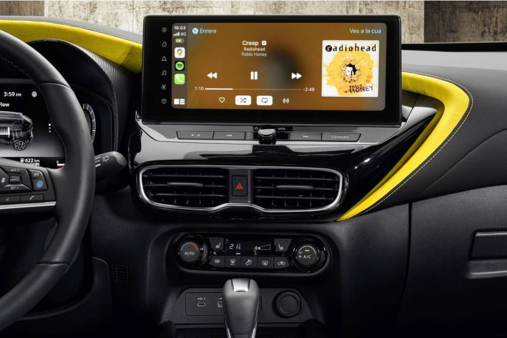 Το δεύτερο -και κυριότερο- σημείο που κεντρίζει τα βλέμματα, είναι η νέα οθόνη των 12,3 ιντσών στην κορυφή του ταμπλό για το σύστημα πολυμέσων. Σχεδόν διπλάσιας διάστασης από του σημερινού Juke (8 ίντσες) και με αναβαθμισμένα γραφικά, ανεβάζει επίπεδο τόσο το διάκοσμο όσο και την ψηφιακότητα της καμπίνας. Ψαγμένη αλλαγή και η αντικατάσταση της κάμερας οπισθοπορείας των 0,3 megapixel, με μια πολύ ευκρινέστερη 1,3 megapixel. Στο κορυφαίο N-Sport παίρνεις δερμάτινες επενδύσεις και διάφορες λεπτομέρειες (ταμπλό, ραφές, προσκέφαλα) στο χρώμα του αμαξώματος, μαζί με μπάκετ καθίσματα και ηχοσύστημα της Bose.