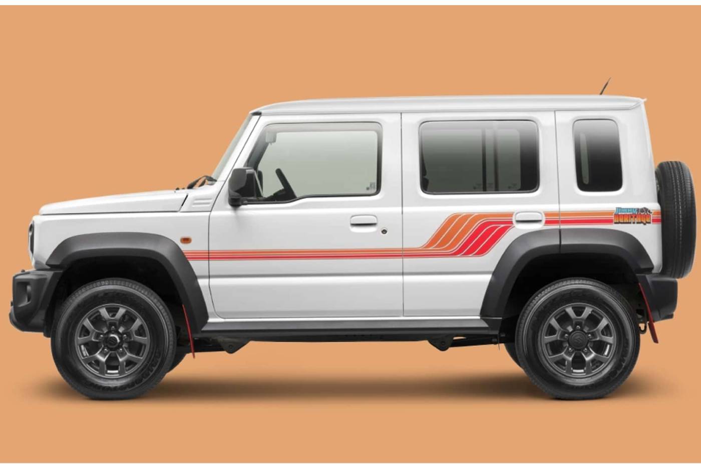 Το Jimny Heritage διακρίνεται αμέσως από τα υπόλοιπα, χάρη στα πλαϊνά αυτοκόλλητα που θυμίζουν τις καλοκαιρινές εκδόσεις του Samurai, αλλά και τους στάνταρ λασπωτήρες. Τέσσερα χρώματα είναι διαθέσιμα (Black Pearl, Jungle Green, White και Medium Grey), αλλά πιστεύουμε πως το λευκό είναι αυτό που αναδεικνύει περισσότερο το νοσταλγικό χαρακτήρα του Heritage, παραπέμποντας ευθέως στο Samurai (ιδίως το κάμπριο).
