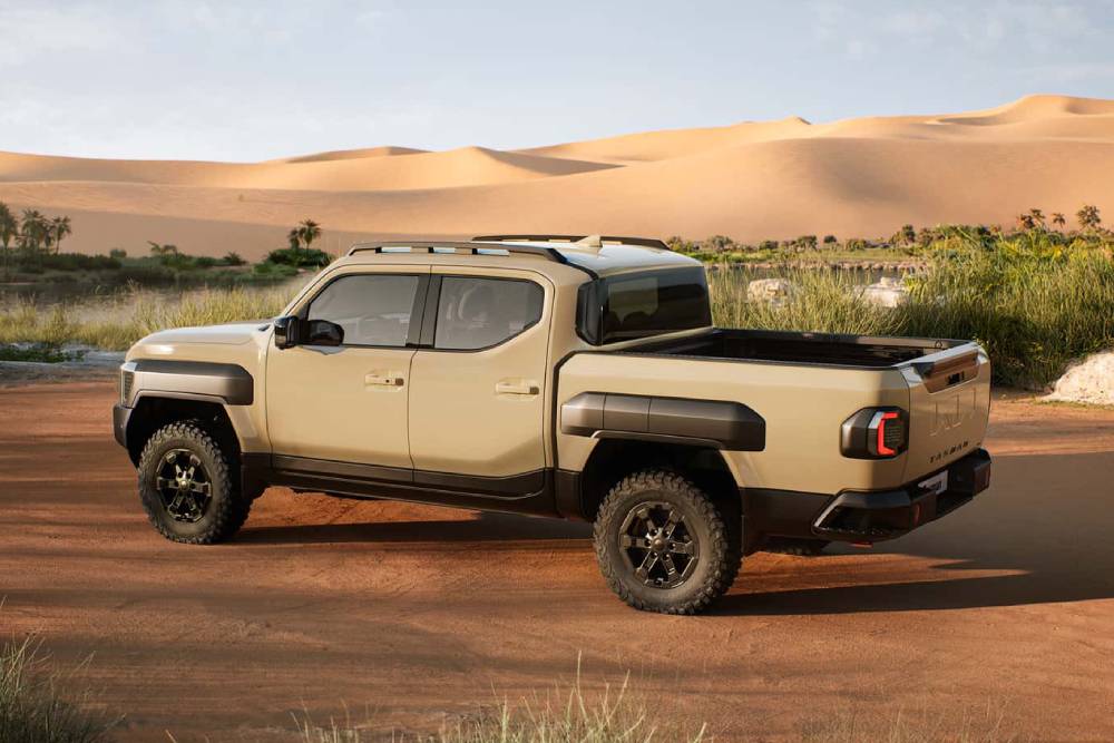 Κρίνοντας από την εμφάνιση, το Tasman έχει όλες τα προσόντα να τα καταφέρει. Ρηξικέλευθο παρουσιαστικό, που δεν μοιάζει με κανένα ανταγωνιστικό μοντέλο και διαχωρίζει μονομιάς τη θέση του από τα Toyota Hilux, Ford Ranger, Isuzu D-Max, VW Amarok και την υπόλοιπη σύνθεση του segment. Εδώ μιλάμε για αγροτικό «παλαιάς κοπής», σκληροτράχηλο, με ευθείες και κάθετες γραμμές να εντείνουν την αίσθηση όλων των διαστάσεων, εντονότατα προστατευτικά για εκτός δρόμου διαδρομές, αλλά και μεγάλη απόσταση από το έδαφος για τον ίδιο λόγο (224 χλστ. το απλό, 252 χλστ. η κορυφαία έκδοση X-Pro). Τα ακροβολισμένα μικρά φανάρια εμπρός-πίσω προκαλούν αίσθηση, όπως και το έντονα προτεταμένο εμπρός μέρος που κάνει το Tasman να θυμίζει αμερικανική νταλίκα (ή REO, για τις «παλιοσειρές»). Οι 17άρες ζάντες και τα μεικτά ελαστικά είναι στάνταρ, την ώρα που το X-Pro ανεβαίνει στις 18 ίντσες και ακόμα πιο εξειδικευμένα λάστιχα.