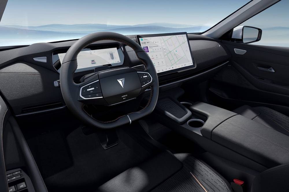 Εσωτερικά δύσκολα θα το παρομοιάσεις με κάποιο μοντέλο της Mazda, καθώς η πληθωρική οθόνη αφής των 14,6 ιντσών δεν έχει καμία σχέση με τα μινιμαλιστικά μόνιτορ που μας έχει συνηθίσει η φίρμα από τη Χιροσίμα. Δίπλα της ένα ψηφιακό καντράν 10,2 ιντσών εντείνει την αίσθηση ψηφιακότητας, την ώρα που το flat bottomed τιμόνι κάνει το ίδιο για τις σπορ εκφάνσεις. Οι δερμάτινες επενδύσεις καλύπτουν τη συντριπτική επιφάνεια της καμπίνας, έχοντας και μια πανοραμική ηλιοροφή να προσθέτει premium πόντους στο διάκοσμο.