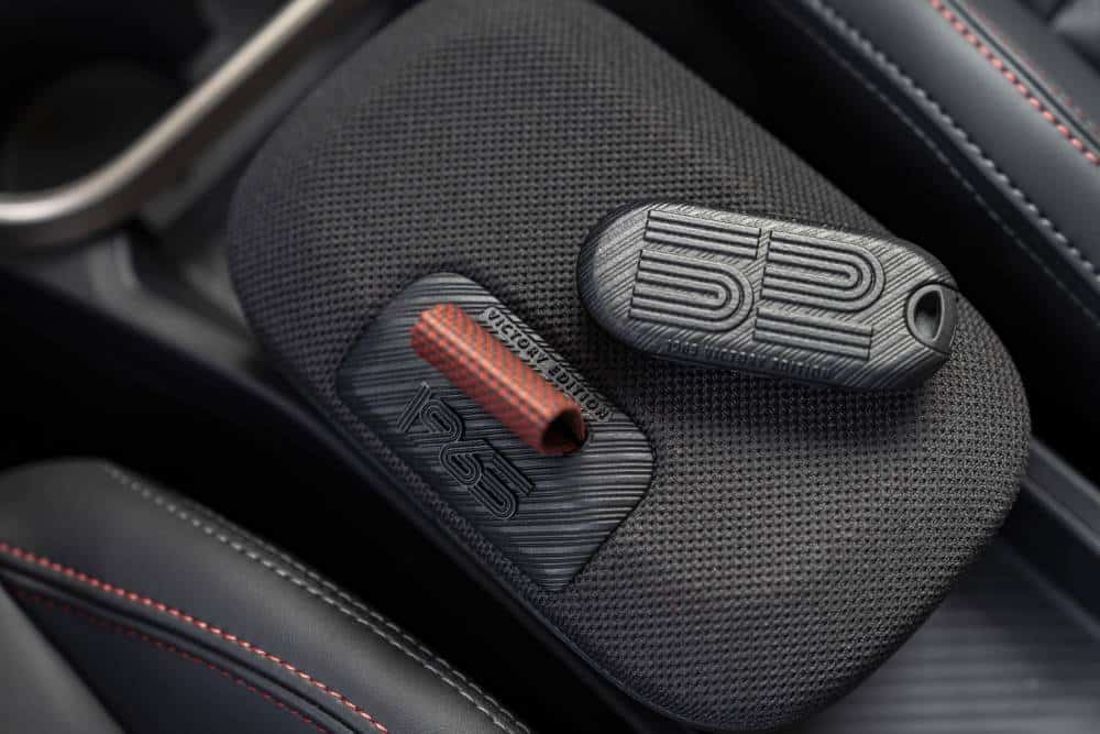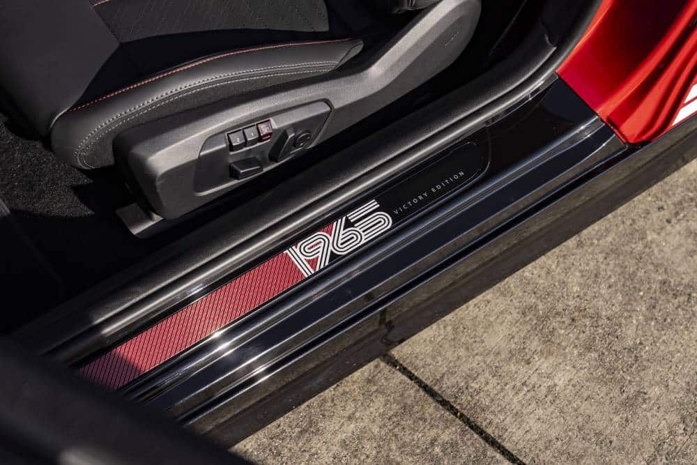 Το «1965 Victory Edition» αναγράφεται φαρδύ-πλατύ στην πόρτα του πορτμπαγκάζ, ενώ στο εσωτερικό των θυρών βρίσκουμε μια πλακέτα που δηλώνει τα πεπραγμένα του Timo Mäkinen (καμία σχέση με τον Tommi) στο Μόντε του ’65. Ο αριθμός της πινακίδας συναντάται ανάγλυφη στη λωρίδα του καπό, ενώ η χρονιά-ορόσημο παίρνει θέση και στο κάτω μέρος του τιμονιού. Η αλήθεια πάντως είναι πως η διχρωμία του αμαξώματος χαλάει αρκετά από την πανοραμική ηλιοροφή, αλλά σημεία των καιρών. Το «52» στις πόρτες τέλος, έρχεται κατευθείαν από τις αντίστοιχες του ιστορικού προγόνου.