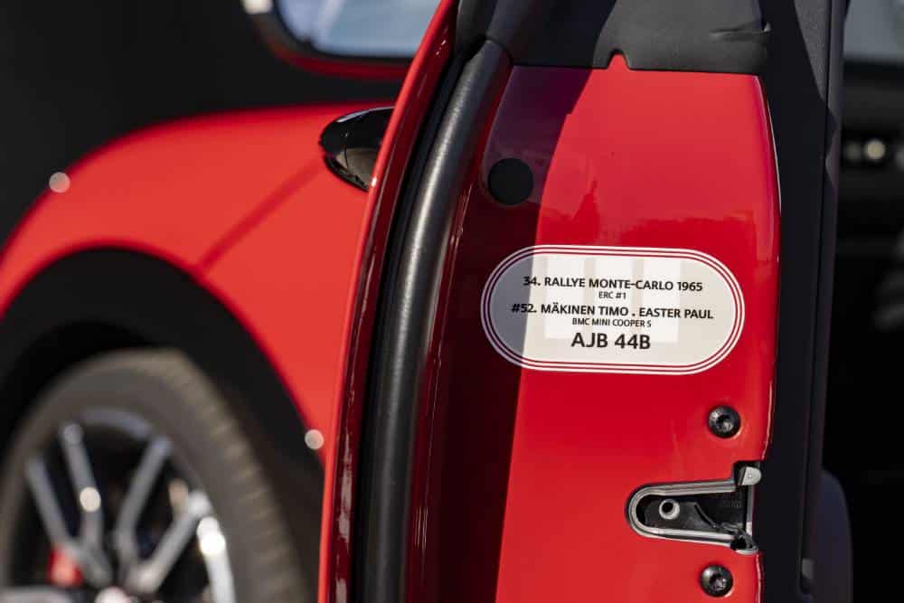 Το Cooper 1965 Victory Edition δηλώνει περήφανα το ποιόν του τόσο μέσω της ονομασίας, όσο και της εμφάνισης. Δεν θα μπορούσε να μην είναι ερυθρόλευκο, με το άσπρο χρώμα να ντύνει την οροφή και τη λωρίδα που διατρέχει το κόκκινο αμάξωμα, στα πρότυπα του θρυλικού Cooper που μεγαλούργησε με τον Timo Mäkinen στο τιμόνι και διατήρησε τα σκήπτρα στον εναρκτήριο αγώνα του Παγκοσμίου Πρωταθλήματος Ράλλυ, έπειτα από τη νίκη του Paddy Hopkirk το 1964