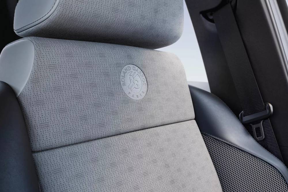 Το 5 Roland Garros ξεχωρίζει για το Pearl White χρώμα του αμαξώματος (επίσης διαθέσιμα τα Midnight Blue, Starry Black και Matt Slate Gray) και την αντίθεση με την Satin Black οροφή, ενώ δεν θα μπορούσαν να λείπουν οι νέες 18άρες ζάντες και τα σήματα του Γαλλικού Όπεν. Πολύ όμορφη λεπτομέρεια το πλέγμα που συνοδεύει το έμβλημα του Roland Garros, στις πόρτες, το οποίο αφενός παραπέμπει στις χορδές της ρακέτας, αφετέρου στο Σταυρό του Αγίου Αντρέα που χαρακτηρίζει την αρχιτεκτονική του σταδίου.