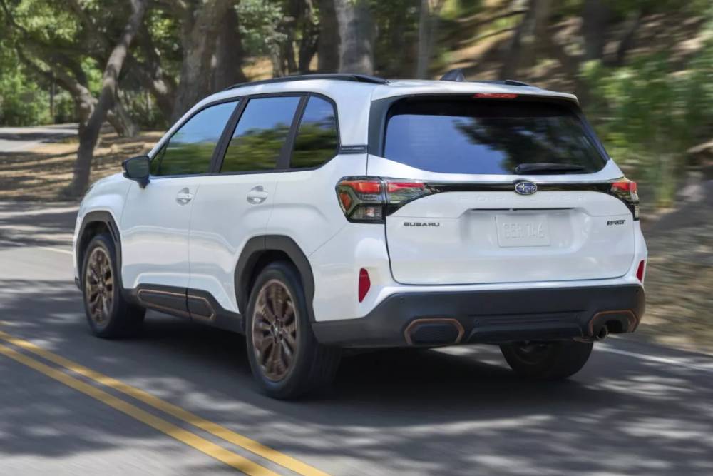 Οι ομοιότητες με τους δυο συμπατριώτες συνεχίζουν στο πίσω μέρος, αν και σε μικρότερο βαθμό. Η εμφάνιση των φαναριών θυμίζουν λίγο εκείνα του S-Cross, αλλά εδώ είναι μικρότερα και με περισσότερες καμπύλες από του Suzuki. Γενικότερα, πάντως, το facelift κρίνεται ως επιτυχημένο, καθότι το ανανεωμένο Forester δείχνει πολύ πιο μοντέρνο και επιβλητικό σε σχέση με πριν. Διαστάσεις δεν ανακοινώνονται, αλλά λογικά δεν θα απέχουν από εκείνες του απερχόμενου (4,62 μέτρα μήκος, 2,67 μ. μεταξόνιο, 1,81 μ. πλάτος, 1,73 μ. ύψος).