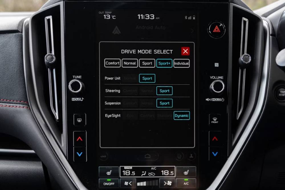 Ευτυχώς, αντίθετα με πολλά «σπέσιαλ» WRX, το συγκεκριμένο συνδυάζεται με το σωστό κιβώτιο. Μόνο 6άρι χειροκίνητο κιβώτιο στη διάθεση του οδηγού, κόντρα στη CVT λαίλαπα των περισσότερων WRX, πάντα με τον τετρακύλινδρο υπερτροφοδοτούμενο boxer των 2.4 λίτρων κάτω από το αεριζόμενο καπό. Η απόδοση παραμένει στα γνωστά επίπεδα των 275 ίππων και 375 Nm, συνεργαζόμενη εννοείται με το σύστημα τετρακίνησης Symmetrical All Wheel Drive και Active Torque Vectoring, ενώ δεν λείπουν τα ενεργά αμορτισέρ για τον έλεγχο της κινηματικής του αμαξώματος.