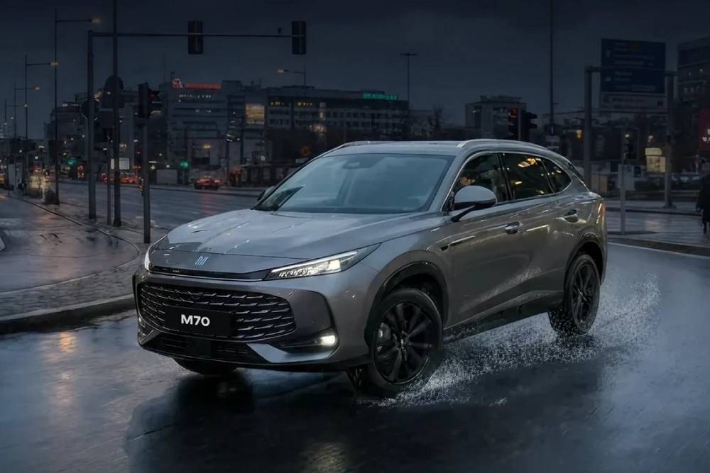 Η λέξη «βασίζεται» βέβαια είναι ελαφριά, καθώς στην ουσία μιλάμε για το ίδιο αυτοκίνητο με άλλα σήματα. Το M70 είναι το MG HS με τα λογότυπα της ρωσικής εταιρίας, κάτι που σημαίνει ότι όλα βαίνουν απαράλλαχτα. Το μήκος δεν αλλάζει από τα 4.655 χλστ. του HS, ενώ ταυτόσημες είναι και οι υπόλοιπες διαστάσεις (πλάτος 1.890 χλστ., ύψος 1.664 χλστ., μεταξόνιο 2.765 χλστ., απόσταση 182 χλστ. από το έδαφος). Ίδια εικόνα και στο εσωτερικό, όπου συναντάμε ένα δίδυμο οθονών 12,3 ιντσών (ψηφιακό πίνακα οργάνων και infotainment) σε ενιαία διάταξη και πλούσιους χώρους τόσο για 5 επιβάτες, όσο και τις επισκευές τους (507 λίτρα το πορτμπαγκάζ κανονικά, έως 1.484 λίτρα με τα πίσω καθίσματα αναδιπλωμένα).