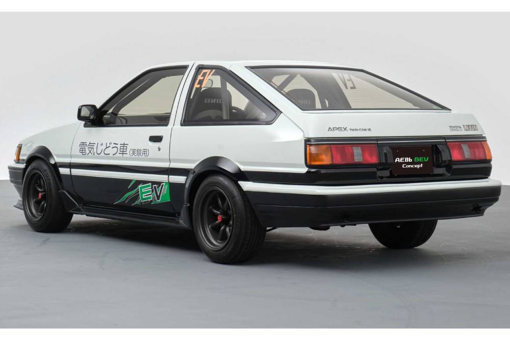 Το έτερο πρωτότυπο είναι το ηλεκτρικό AE86 BEV, που βασίζεται στο Levin και υιοθετεί τα φιξ μακρόστενα φανάρια μπροστά. Εξωτερικά μοιάζει ίδιο με το H2, ωστόσο κάτω από το αμάξωμα βρίσκουμε ένα ιδιαίτερα ενδιαφέρον κινητήριο σύνολο. Ο ηλεκτροκινητήρας προέρχεται από το Tundra Hybrid και η συστοιχία μπαταριών από το νέο plug-in Prius, ενώ υπάρχουν εξαρτήματα και από άλλα υβριδικά μοντέλα της Toyota, αλλά και της Lexus. Ακόμα πιο ξεχωριστή η φιλοσοφία μετάδοσης, η οποία ενσωματώνει χειροκίνητο κιβώτιο! Οι μηχανικοί της ιαπωνικής φίρμας αναφέρουν πως το μηχανικό κιβώτιο επιλέχθηκε τόσο για την αίσθηση, όσο και τη βελτιστοποίηση της κατανομής βάρους – η οποία ανακοινώνεται πως βρίσκεται στα επίπεδα του κανονικού AE86.