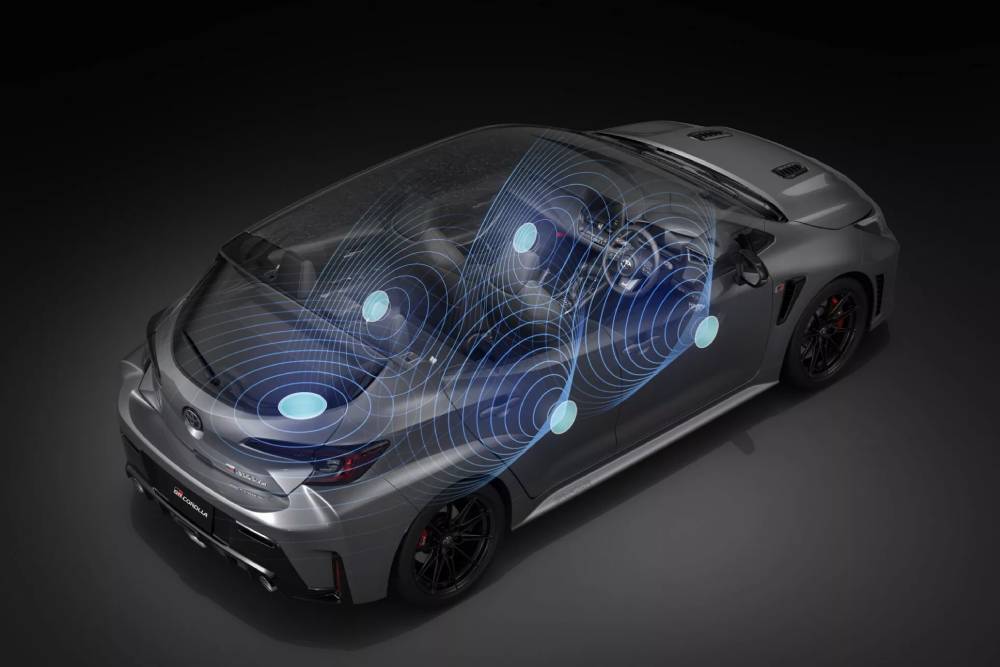 Το ανανεωμένο GR Corolla αλλάζει ελάχιστα εμφανισιακά, με τον εμπρός προφυλακτήρα να διαθέτει ελαφρώς μεγαλύτερες εισαγωγές για την ψύξη των ψυγείων (μαζί με αυτό του κιβωτίου) και των φρένων, που έχει σχεδιαστεί για να σταθεροποιεί τις θερμοκρασίες του κινητήρα κατά τη διάρκεια παρατεταμένης οδήγησης με υψηλό φορτίο. Ο στόχος είναι απλός: να μπορούν οι οδηγοί να απολαμβάνουν το αυτοκίνητο στο μέγιστο των δυνατοτήτων του και αξιόπιστα, για μεγαλύτερα διαστήματα στην πίστα. Ούτε εσωτερικά διαφοροποιείται ιδιαίτερα η κατάσταση, πέρα από το νέο προαιρετικό ηχοσύστημα της JBL και το αναβαθμισμένο σύστημα Active Sound Control, που φιλτράρει τους ανεπιθύμητους θορύβους του κινητήρα, προσφέροντας παράλληλα τρία επιλέξιμα μοτίβα ήχου και επίπεδα έντασης ήχου που συνδέονται με τα προγράμματα οδήγησης.