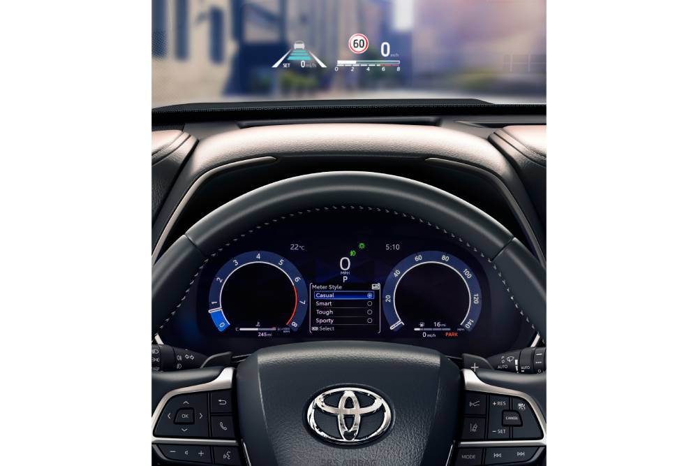 Εμφανισιακά το μόνο που αλλάζει είναι το νέο Cypress Green χρώμα, που συνδυάζεται με μαύρες 20άρες ζάντες και σκουρόχρωμα φωτιστικά σώματα εμπρός. Η παλέτα των δερμάτινων επενδύσεων εντός επίσης εμπλουτίζεται με νέα χρώματα, συγκεκριμένα τα Beige και Ochre (μπεζ και ώχρα), ωστόσο η μεγαλύτερη αλλαγή αφορά την ψηφιακότητα. Το Highlander αποκτά το νέο σύστημα πολυμέσων Toyota Smart Connect, που συνοδεύεται από μεγαλύτερη οθόνη αφής 12,3 ιντσών στο ταμπλό και ψηφιακό πίνακα οργάνων ίδιας διάστασης.