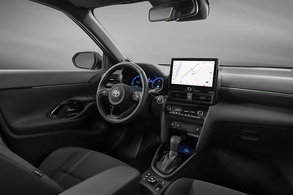 Στο εσωτερικό, το πρώτο που τραβάει το βλέμμα είναι ο αναβαθμισμένος τεχνολογικά διάκοσμος, χάρις στο νέο ψηφιακό καντράν των 12,3 ιντσών (7 ίντσες οι βασικές εκδόσεις) και την οθόνη αφής των 10,4 ιντσών (9 ίντσες στάνταρ). Το σύστημα πολυμέσων Toyota Smart Connect υποστηρίζει πλέον over-the-air ενημερώσεις και ασύρματη συνδεσιμότητα Android Auto – Apple CarPlay, ενώ αναβαθμισμένο εμφανίζεται και το πακέτο επικουρικών συστημάτων Toyota T-Mate. Στάνταρ σε όλη τη γκάμα πια, με νέες κάμερες και ραντάρ ευρύτερου σκαναρίσματος, που βελτιστοποιούν την απόδοση των συστημάτων Pre-Collision, Acceleration Suppression, Proactive Driving Assist, Safe Exit Assist, Rear Seat Reminder System και Adaptive Cruise Control.